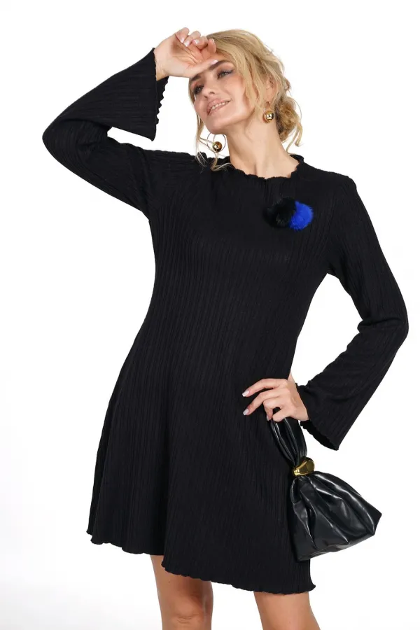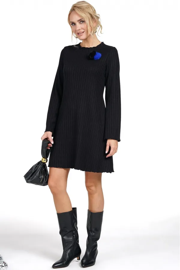Платье полуприлегающего силуэта вверху с расширением книзу, с цельнокроеной стойкой, с втачными, одношовными, длинными рукавами книзу расширенные. Горловина, низ изделия и рукава обработаны узкой краеобмёточной строчкой... Читать далее...