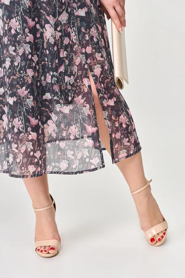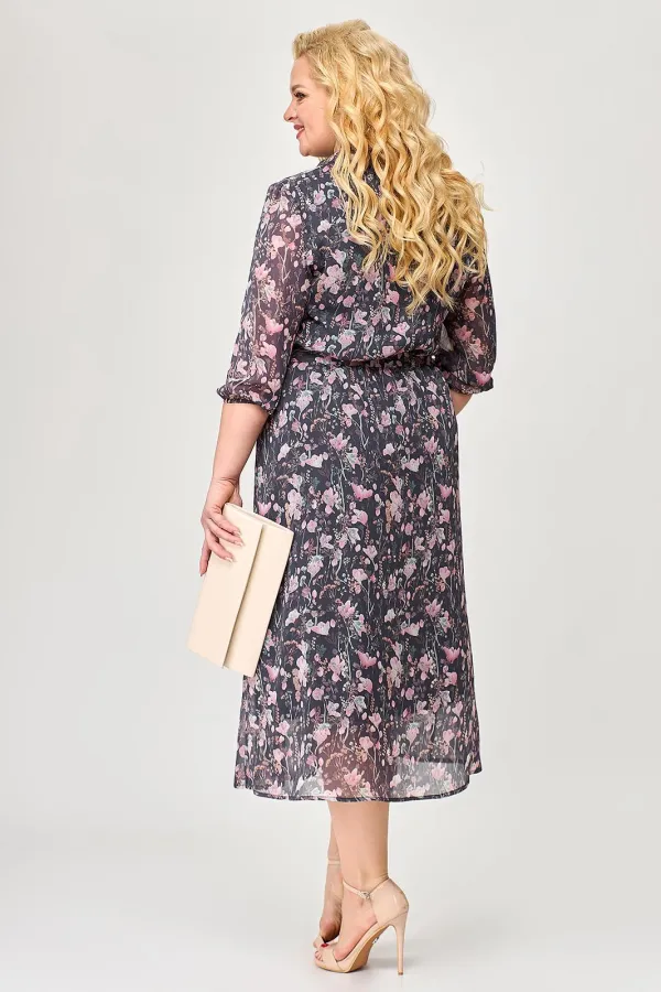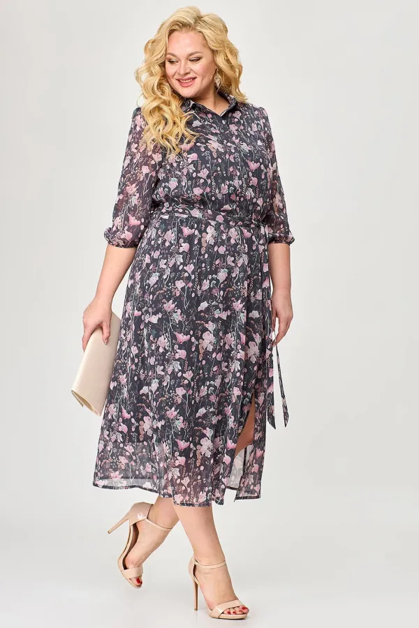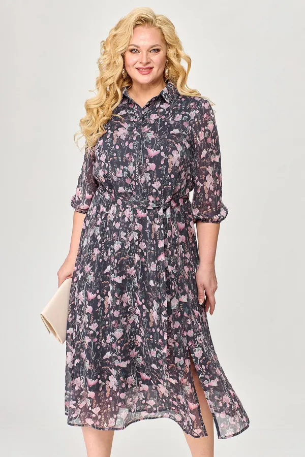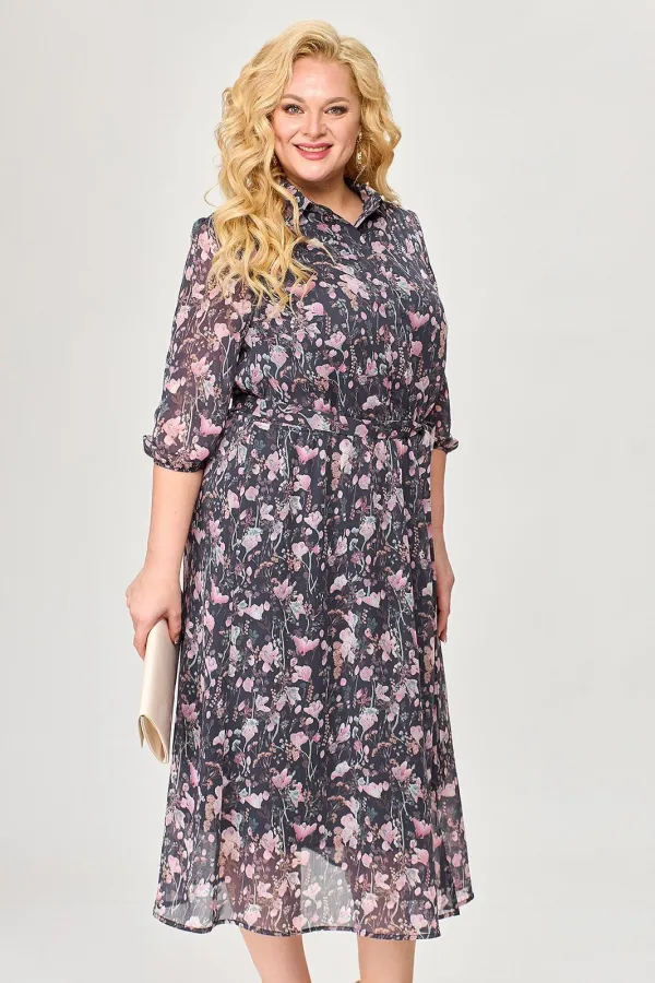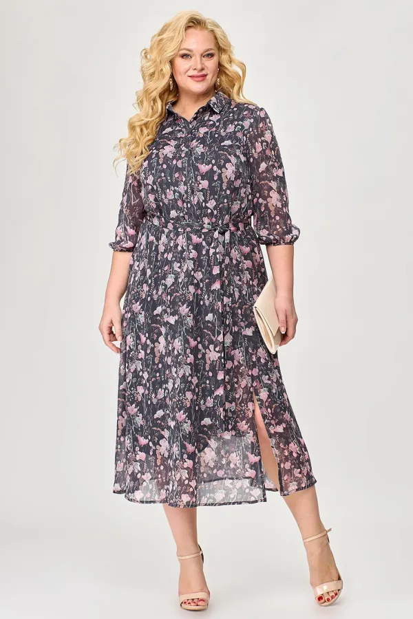 Шифоновое женское платье - незаменимая вещь в гардеробе современной модницы. В наличии платья больших размеров для женщин плюс сайз. Расширенное к низу платье прямого силуэта на резинке по линии талии прекрасно скрывает нюансы фигуры и подчеркивает достоинства. На полочке платья обработана потайная застёжка. Горловина с воротником на стойке. На платье по рельефу переда юбки обработан разрез. Рукав длиной чуть ниже локтя, низ рукава на резинке. В комплект к платью входит сьёмный пояс. Длину изделия можно отрегулировать благодаря подрезу с резинкой на талии. Платье шикарно смотрится как с туфлями на каблуке, так и с кедами. Меняйте свой образ в зависимости от настроения и носите его как классическое, офисное, или как вечернее платье!