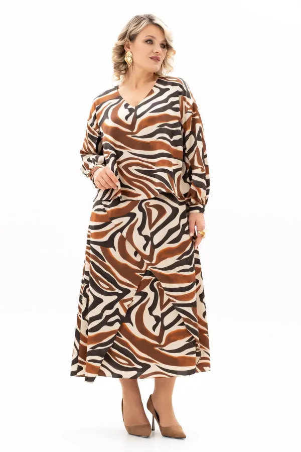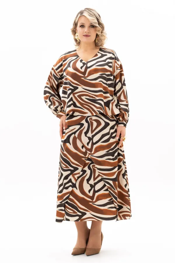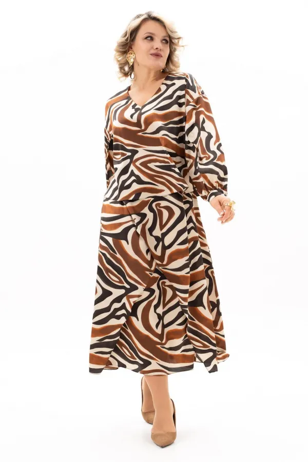 Представляем Вам элегантное женское платье для истинных леди, которые выбирают для себя лучшее! Платье имитация костюма- тренд всех времен! Оно покорит Вас с первого взгляда и займёт достойное место в гардеробе. Нежная ткань приятна к коже, не мнётся и практична в носке. По всей длине эластичная подкладка, которая не сковывает движений и позволяет комфортно себя чувствовать весь день. Сочетание разных оттенков отлично гармонирует между собой. Правильный крой и проверенные лекала гарантируют идеальную посадку для дам больших размеров. Лиф платья свободный, по спинке в среднем шве разрез и застежка на навесную петлю и пуговицу. Юбка платья А - силуэта, с косыми наслоенными подрезами по переду. Спущенный рукав с декоративным разрезом до притачной манжеты и сборке по низу подойдет на любую полную руку. Манжета застегивается на петлю пуговицу. На работу в офис или в ресторан , день рождения, свадьба, в театр или на концерт любимого исполнителя - модель универсальна!