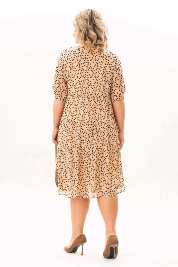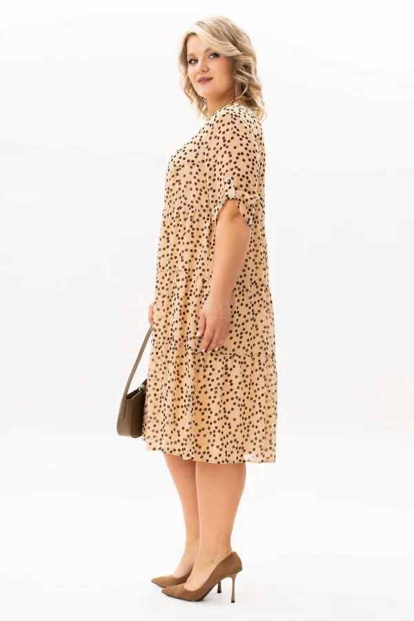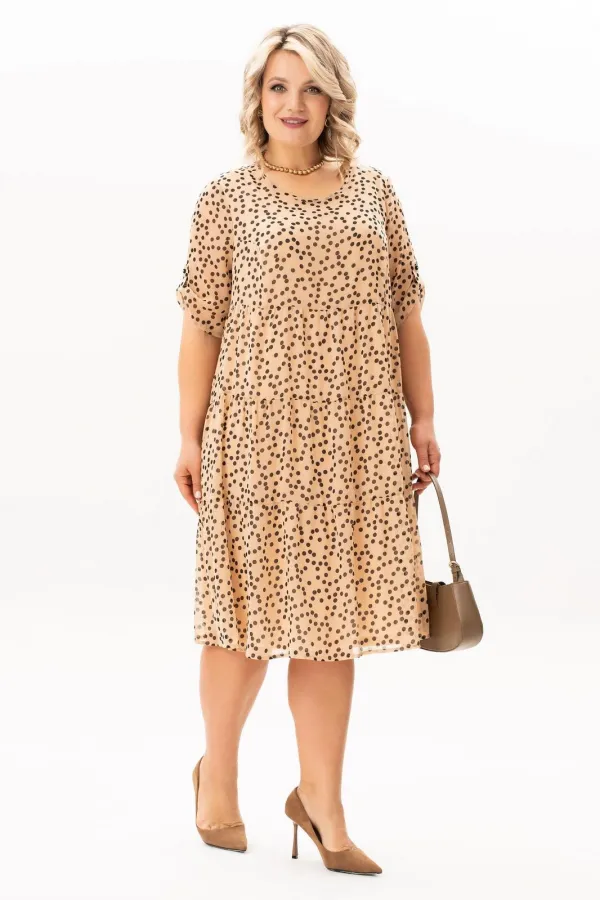 Великолепное шифоновое платье в горошек, в три яруса воланов, собранных на сборку - хит всех сезонов. Эта стильная и оригинальная деталь гардероба поможет сакцентировать внимание на красивой фигуре, скрыть недостатки нестандартной комплекции и сделать ее более изящной. Универсальное и практичное шифоновое платье свободного силуэта, длиной чуть ниже колена. На переде платья есть нагрудные вытачки. Вырез горловины круглый. Рукав втачной, декорирован патой на петлю и пуговицу. Платье на подкладке. Модное платье непременно поможет создать нужное настроение с нотками лёгкости и беззаботности. Платье актуально как свадьбу, день рождения, выпускной, так и просто прогуляться по набережной!