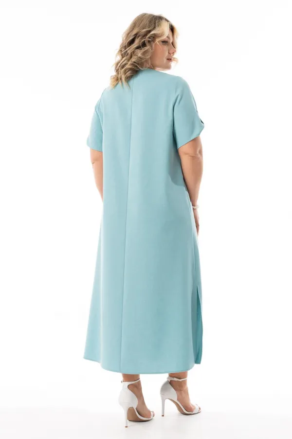 Комфортное летнее платье А-силуэта из плательной ткани лен-вишер смотрится очень оригинально и интересно. Платье из дышащего материала лен вишер идеально подойдет для полных женщин. Асимметричный перед со средним швом и диагональными подрезами в области бедер гармонично фрагментируют фигуру и наполняют образ легкостью. В боковых швах есть разрезы и функциональные карманы. Нагрудные вытачки создают прилегание в области груди. Спинка со средним швом, рукав короткий, с патой и пуговицей. Модель украшена изящной нашивкой. Элегантное и классическое платье легко комбинировать, позволяя создать и деловой стиль, и вечерний образ для девушек и женщин всех возрастов. Платье станет отличным выбором для учителей на последний звонок или даже на день рождения. Удобный крой и стильный дизайн делают его идеальным для пышных дам, на все праздники, а также для вечерних прогулок.