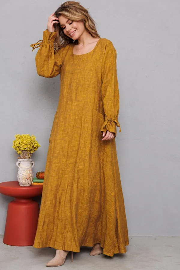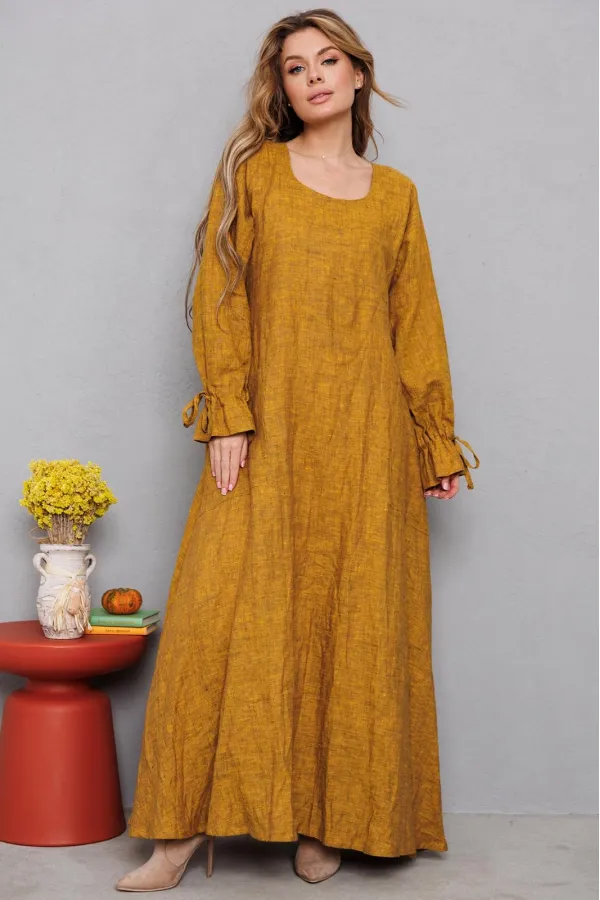 Натуральное льняное шикарное платье со смыслом. Немного необычный рябенький лён сложного привлекательного оттенка. Широкая юбка платья позволяет испытывать истинное наслаждение при ходьбе. Карманы это так же красиво как и удобно. Особая фишка этого платья - рукава с кулисой и оборкой. Это действительно шик и невозможно оторвать взгляд от этой красоты. На груди идёт очень глубокая обтачка уголком к талии, что создает эффект стройности и дополнительно защищает грудь и позволяет ходить без нижнего белья. На фото виднеется нижнее платье , это модель 9729, которую можно надевать для утепления под любые платья А М У Л Е Т и заказывается отдельно. Каждое платье бренда А М Л Е Т создано с применением древних славянских принципов по изготовлению обережной одежды. Обращаю Ваше внимание на то, что к заказу надо подходить осознанно, с пониманием ценности, а возвраты или неоплата, не в вашу копилку Благочестия, как говорится ). Мы Вас Любим и в комплекте к платью прилагаем сумку-шопер с логотипом бренда. Это Платье для Радости и Благости! Наслаждайтесь!В подарок идет шопер с логотипом бренда.