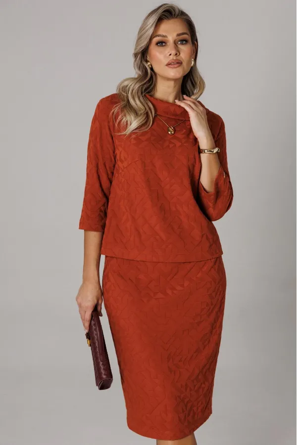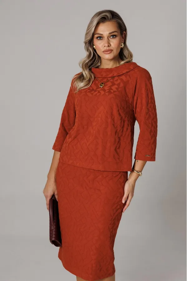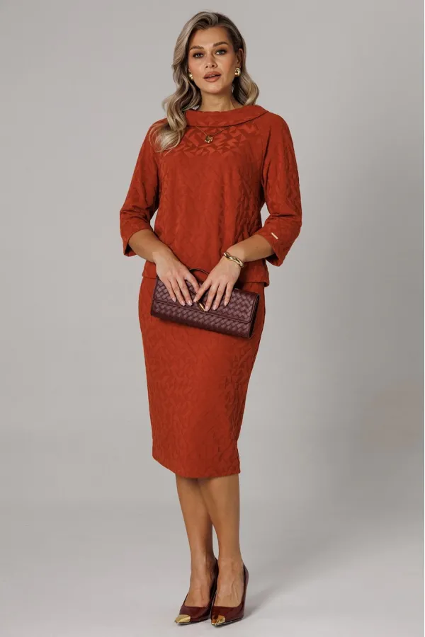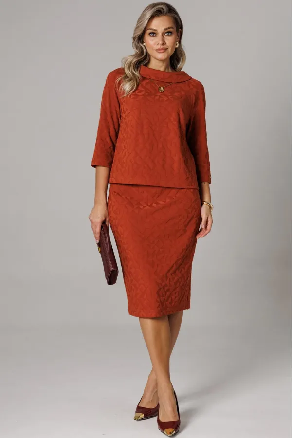 Женский костюм двойка из вязанного полотна с объемным рисунком станет изюминкой вашего гардероба. Этот деловой комплект с блузкой плюс сайз станет отличным выбором для офисных работников и всех, кто ценит комфорт и стиль в одежде. Юбка без подкладки обеспечивает свободу движения, а длина (миди) делает ее универсальной для любого типа фигуры. Блузка без застежки с воротником шалевой формы - это не только функциональный, но и стильный женственный акцент в образе. Длина рукава в блузке plus size 3/4 делает костюм универсальным. Этот теплый классический костюм создан для повседневной носки и будет радовать вас своей мягкостью и комфортом даже в самые холодные дни. Комплект шикарный и создан с учетом особенностей женской фигуры и идеально подойдет для обладательниц пышных форм, для высоких и невысоких. Он одинаково хорошо смотрится на стройных и плюс сайз, с большой и маленькой грудью. Благодаря своему строгому и элегантному дизайну, юбочный костюм станет незаменимым элементом вашего гардероба и поможет создать множество деловых и вечерних образов. Почувствуйте себя уверенно и комфортно с стильным костюмом от Анастасия! Комплект без подклада, не на флисе, без начеса, ткань не просвечивает. Длина блузки-53см. Длина рукава (от горловины) - 55см. Длина юбки-72см.
