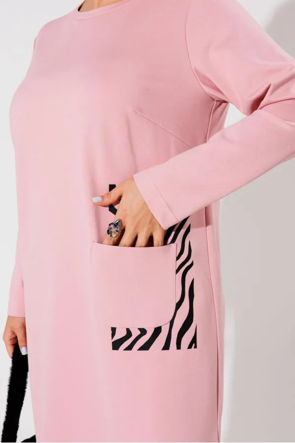 Но настоящая изюминка этого платья - это печать с принтом зебры под карманом.