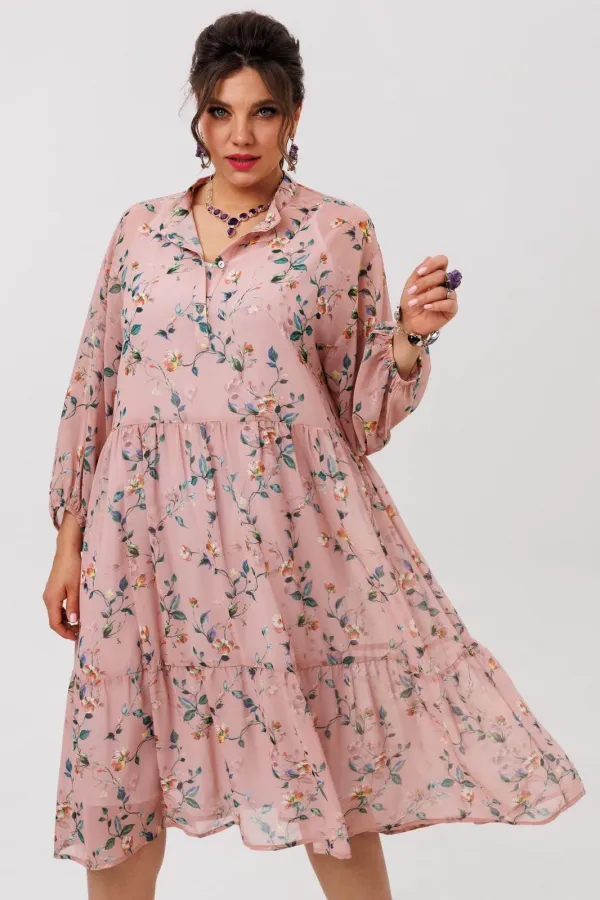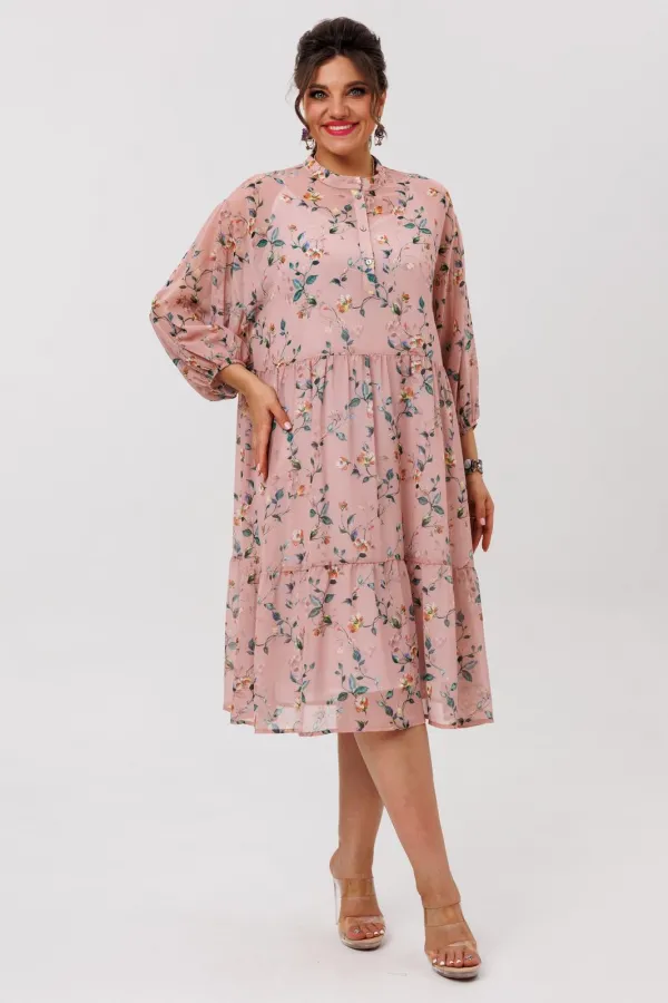 Лёгкое, воздушное платье из шифоновой ткани с флористическим принтом «пудровый сад» создаёт настроение движения и свободы. Свободный силуэт мягко струится по фигуре, позволяя чувствовать себя легко и непринуждённо, а актуальный крой делает модель универсальной для разных образов - от повседневных до более нарядных.