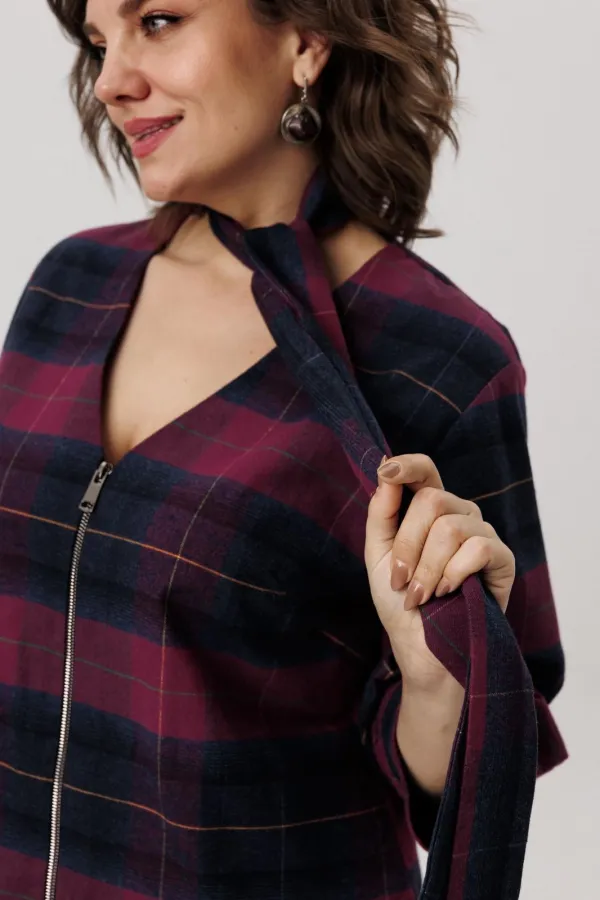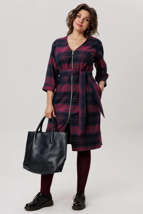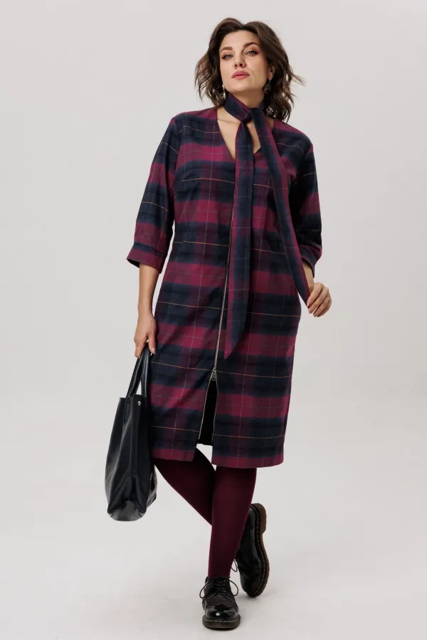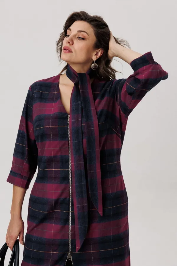 Фланелевое платье полуприлегающего силуэта в винном оттенке — это выбор настоящих модниц.