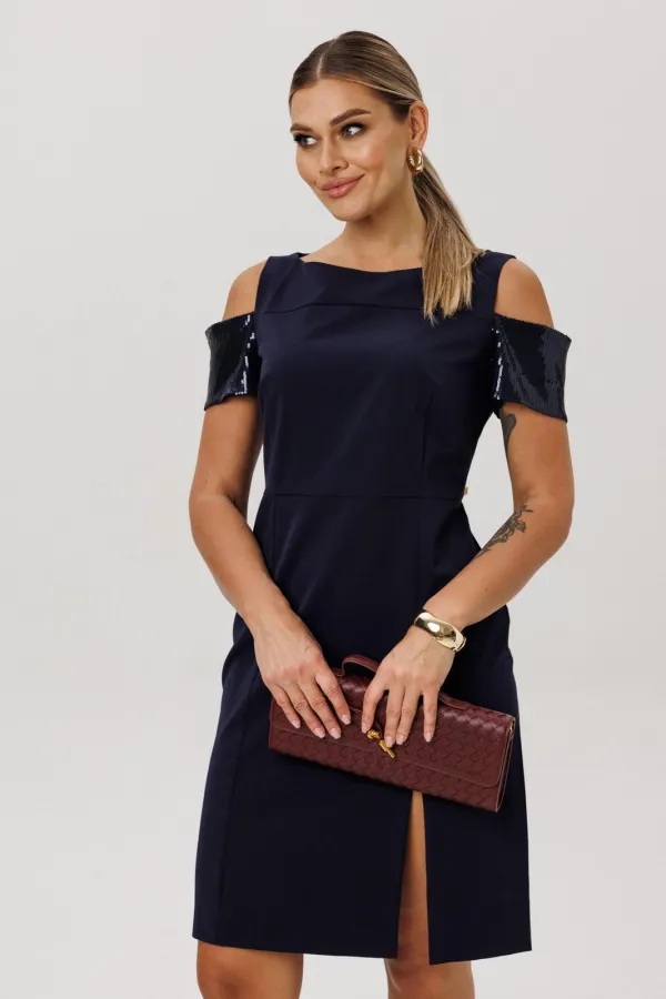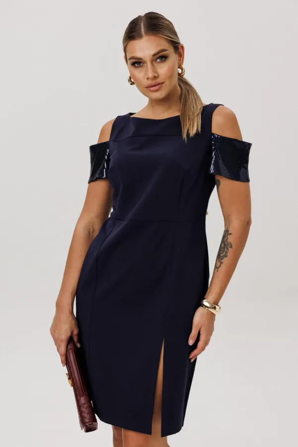 Праздничное платье-футляр — идеальный выбор тех, кто ценит удобство и красоту не разделяя их. Полуприлегающий силуэт с открытой линией плеча и акцентным элементом на рукавах выгодно подчеркивают достоинства, выделяя вас... Читать далее...