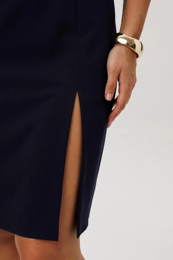 Элегантный вырез горловины-лодочкой и конструктивные линии талевых и нагрудных вытачек создают идеальный рельеф, подчеркивая вашу индивидуальность и скрывая недостатки, а разрез придает образу нотки пикантности.