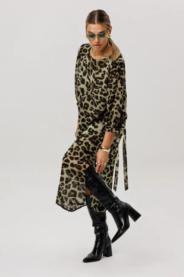 Завязки на рукавах добавляют особого шарма, подчёркивая индивидуальность, а изящные разрезы вдоль юбки — смелости и элегантности вашему образу.