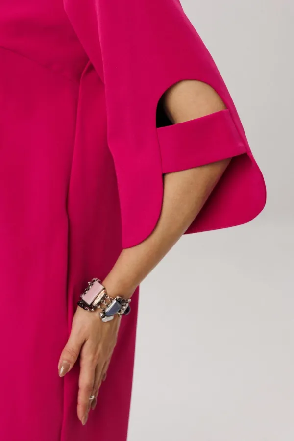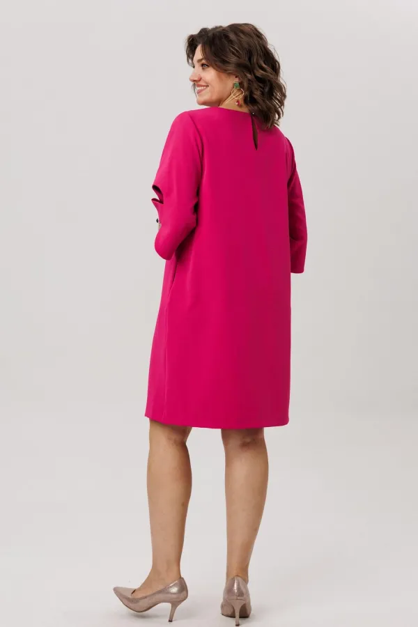 Платье от Анелли, воплотившее в себе торжественную элегантность, построено на безупречном крое и продуманных деталях. Его силуэт-трапеция, ниспадающий до длины, слегка прикрывающей колено, создает современный и уверенный образ.