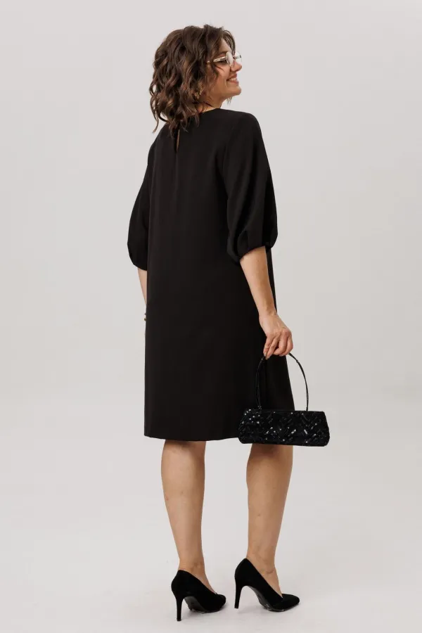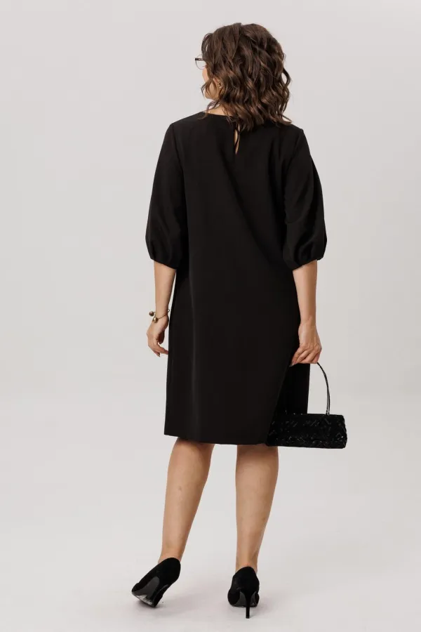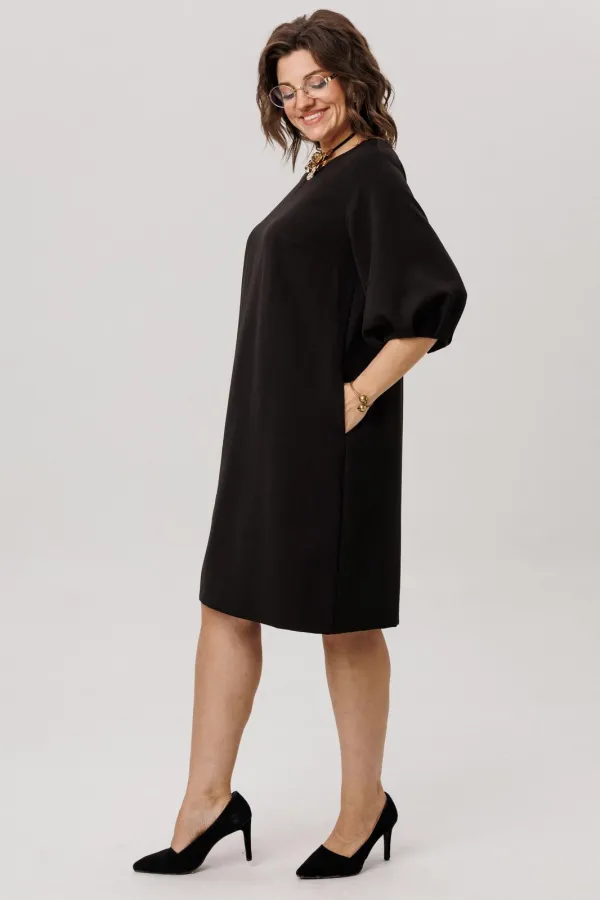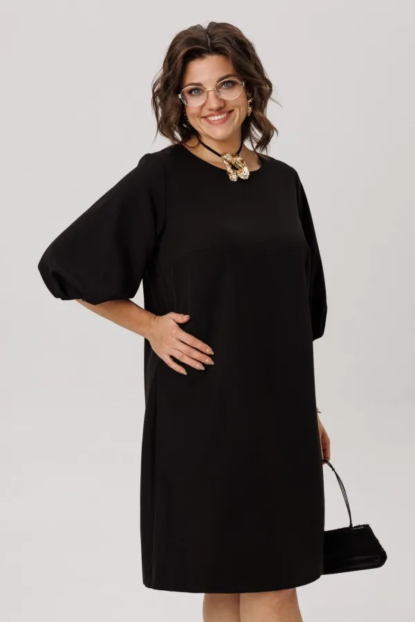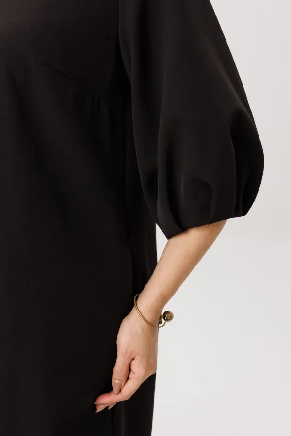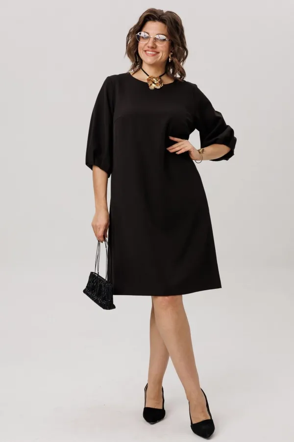 Мягкий рукав платья украшен у запястья изящной сборкой, придающей образу лёгкость и утончённость. Идеальная длина, прикрывающая колени, создана для повседневного комфорта, сохраняя при этом элегантность силуэта.