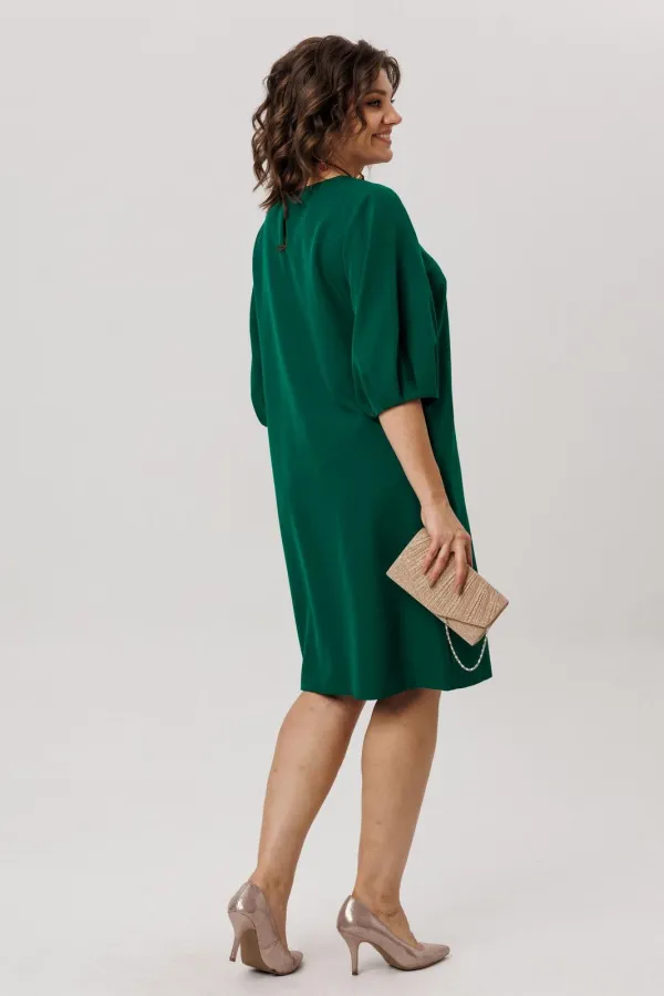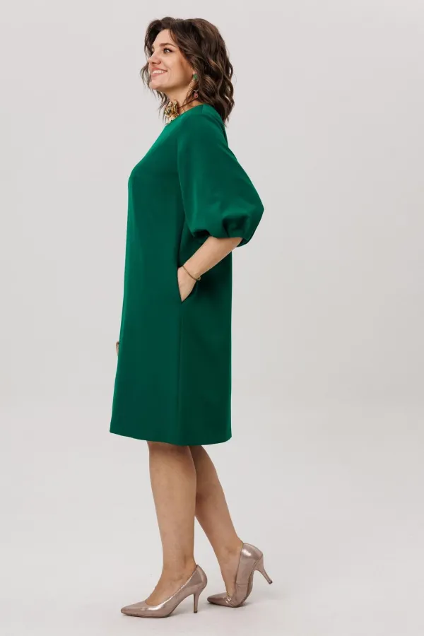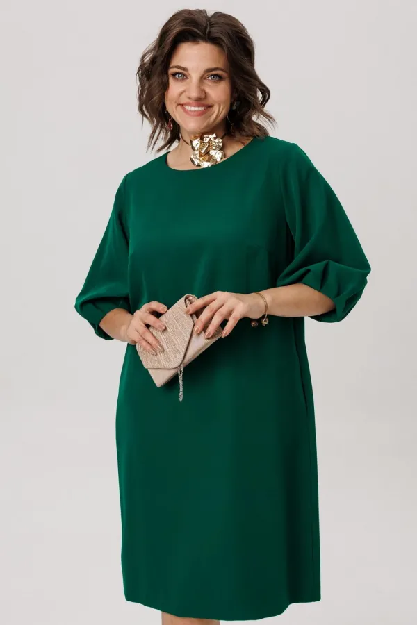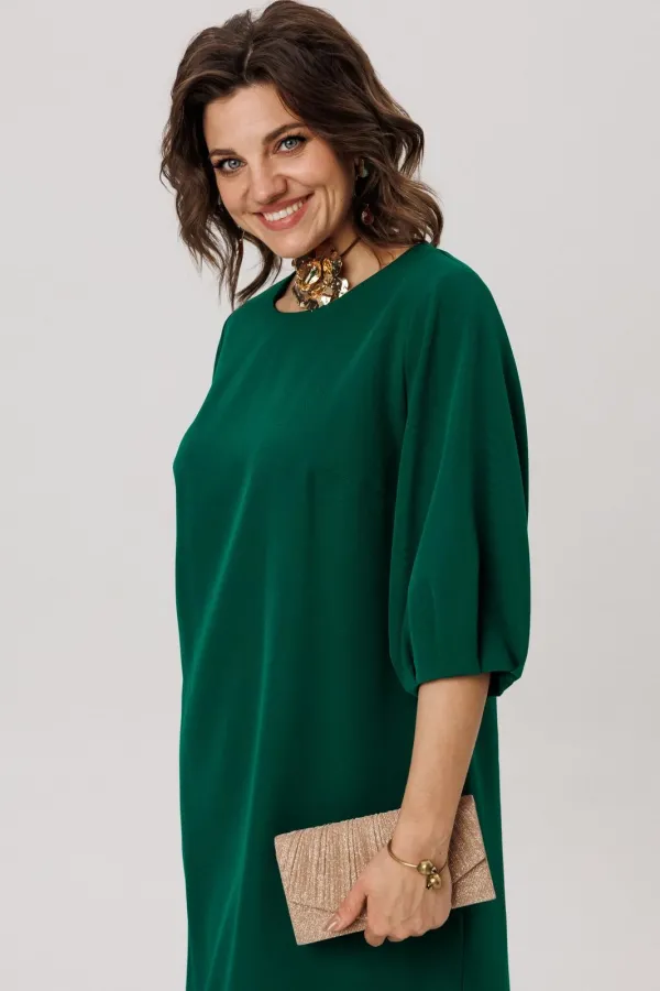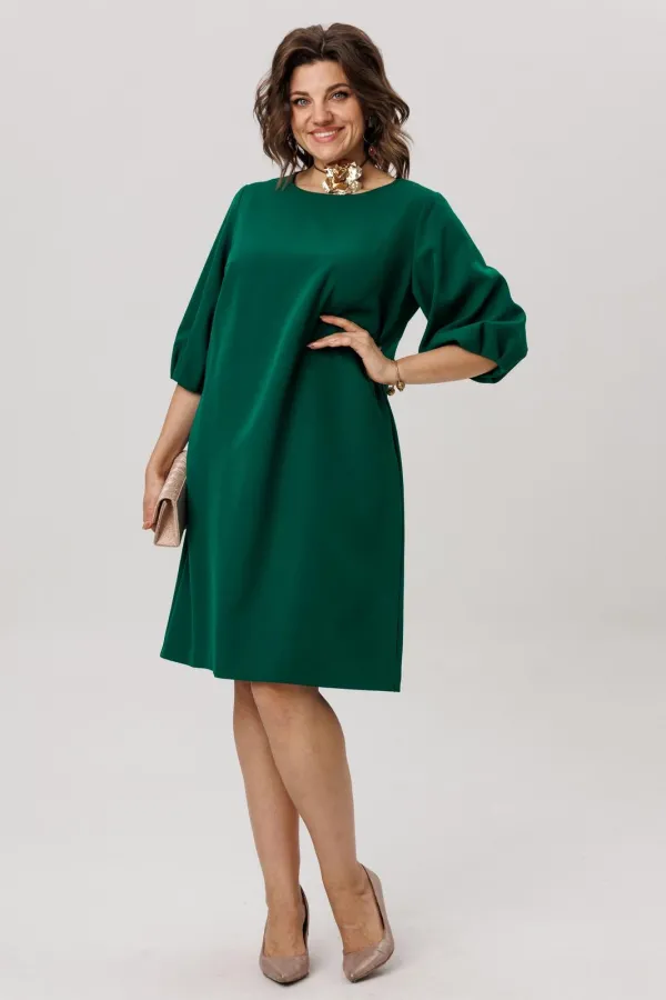 Мягкий рукав платья украшен у запястья изящной сборкой, придающей образу лёгкость и утончённость. Идеальная длина, прикрывающая колени, создана для повседневного комфорта, сохраняя при этом элегантность силуэта.