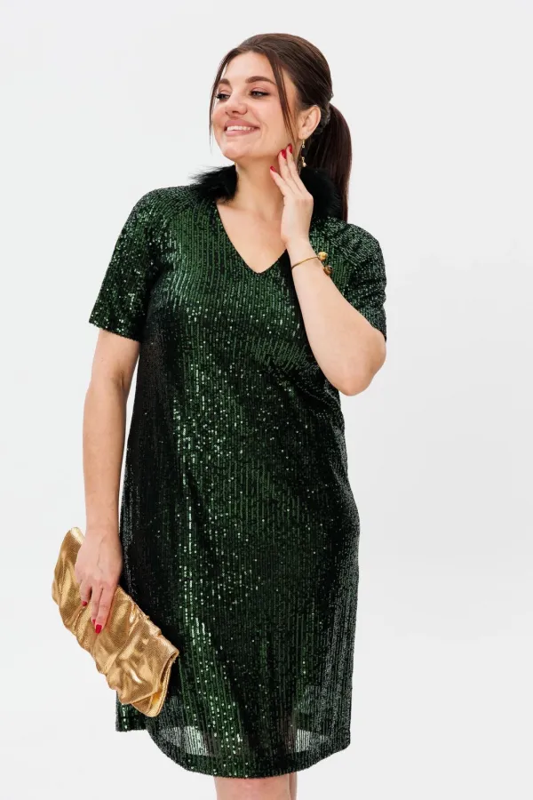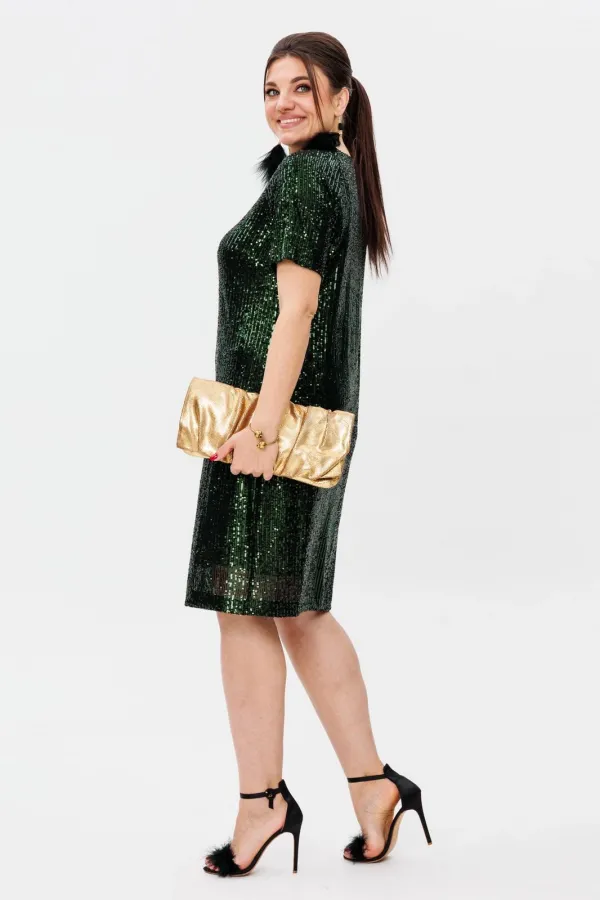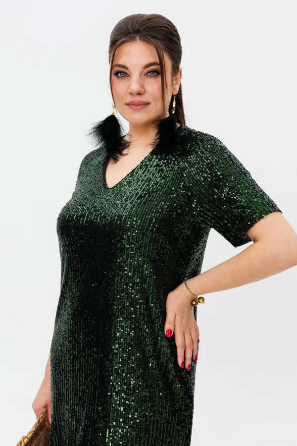 Кристальная россыпь пайеток, сотканная из тысячи отблесков - это уже не сиюминутный блеск, а вечная игра света - вне времени и трендов. V-образный вырез и мягкий рукав создают изящный силуэт, ведущий к идеальной длине,... Читать далее...
