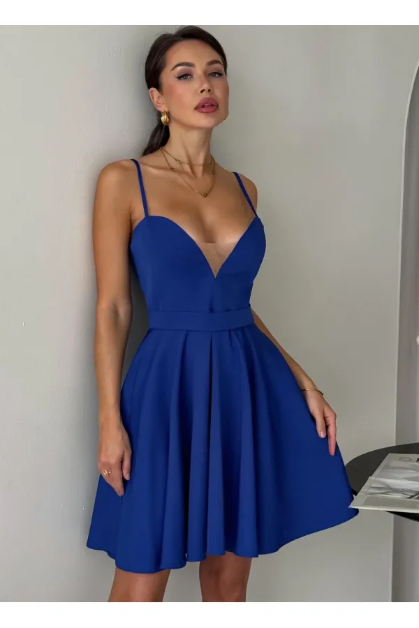Каждый вечер станет особенным в этом платье, ведь оно сногсшибательно подчеркивает фигуру. Глубокое декольте дополнено эластичной вставкой из нюдовой сетки, а пышная юбка-мини позволит продемонстрировать всю красоту ваших ножек. Спинка задекорирована кокетливой шнуровкой для регулировки по фигуре. Застежка на потайную молнию по спинке юбки в среднем шве.