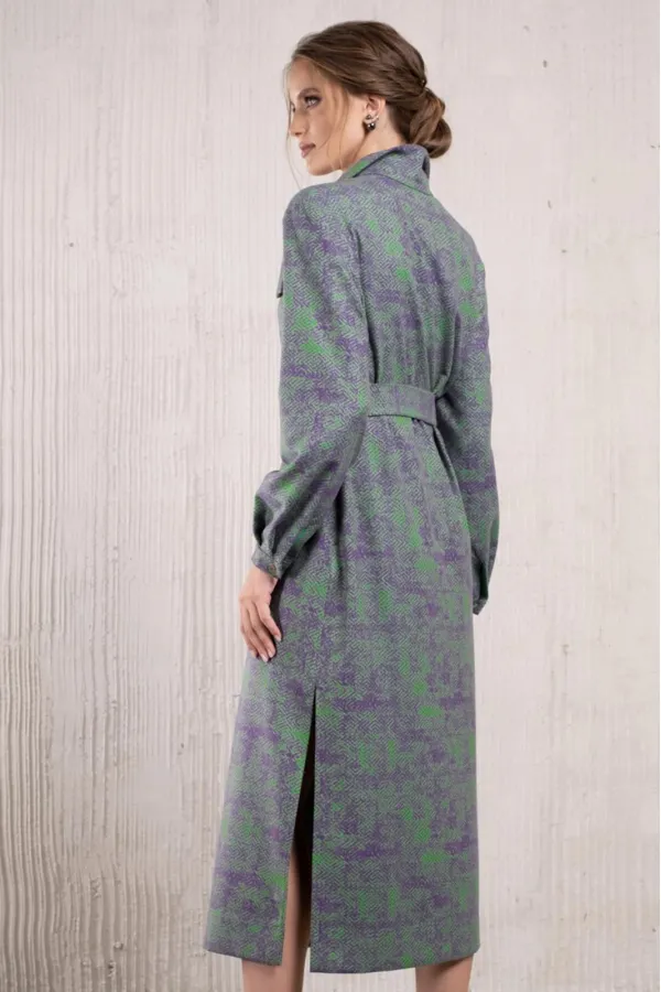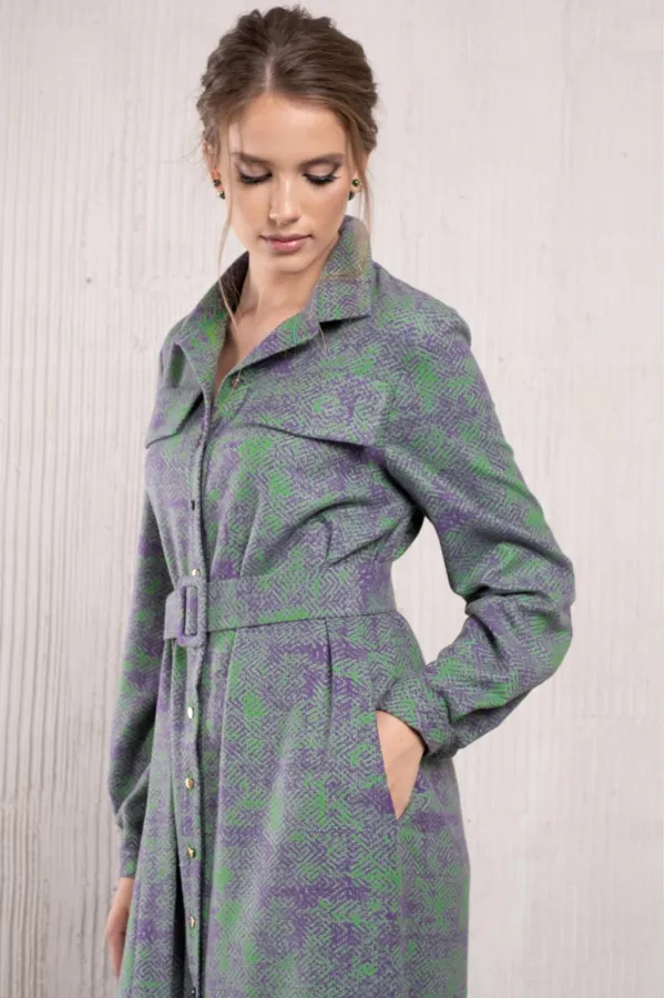 Стильное, удобное платье-рубашка с поясом. Ткань костюмно-плательная средней плотности, на ощупь мягкая, приятная. Рукав втачной, низ на манжете. На переде застежка на пуговицы и имитация карманов. В боковых шах удобные карманы и разрезы. Внутренние швы окантованы. Пояс в комплекте, съемный. Длина платья 127 см, рукава 61 см.