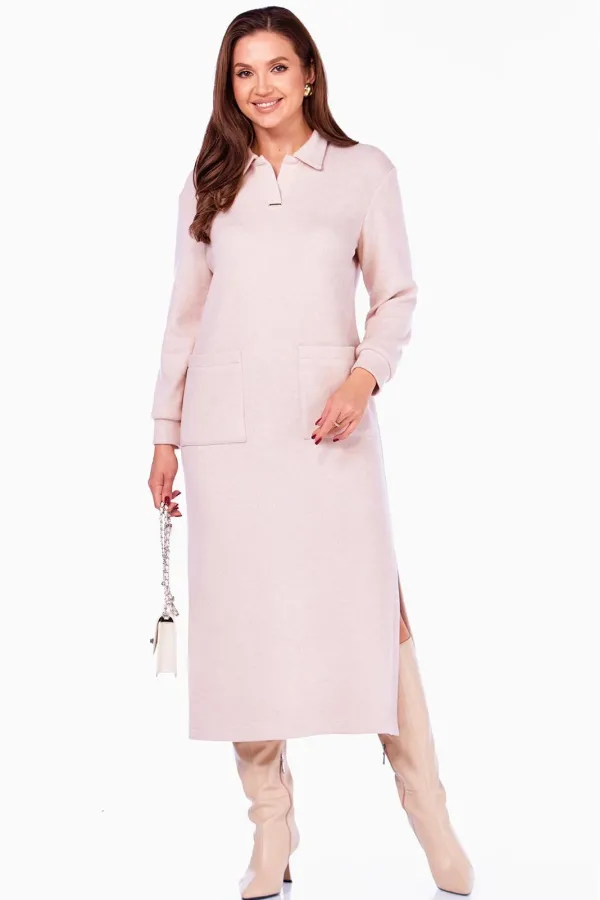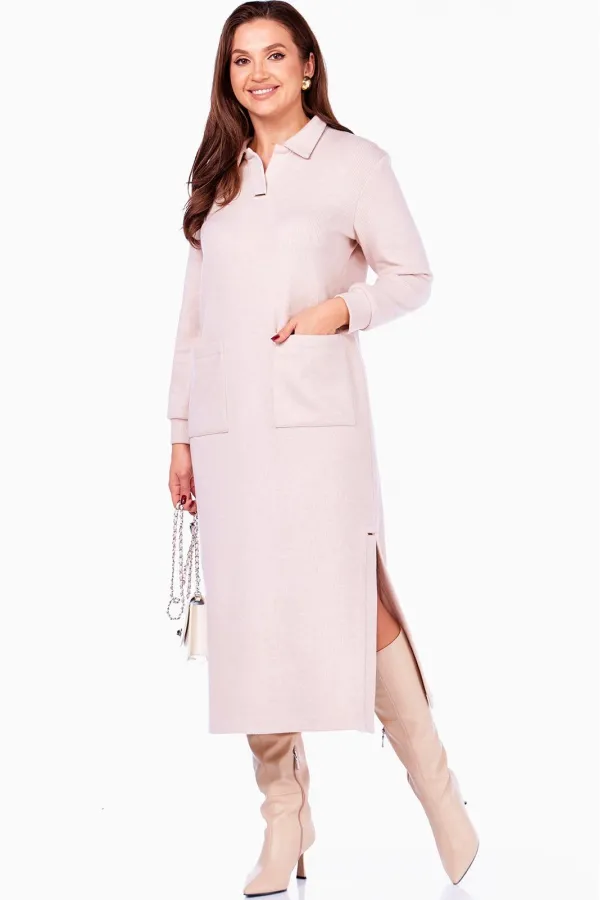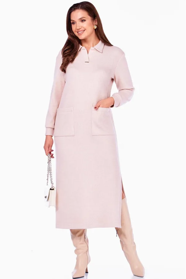 Женское платье прямого силуэта, длиной ниже середины икры и интригующим разрезом слева. Платье выполнено из мягкого трикотажного полотна под Вельвет в широкий рубчик. Платье с отложным воротником и планками с декоративно... Читать далее...