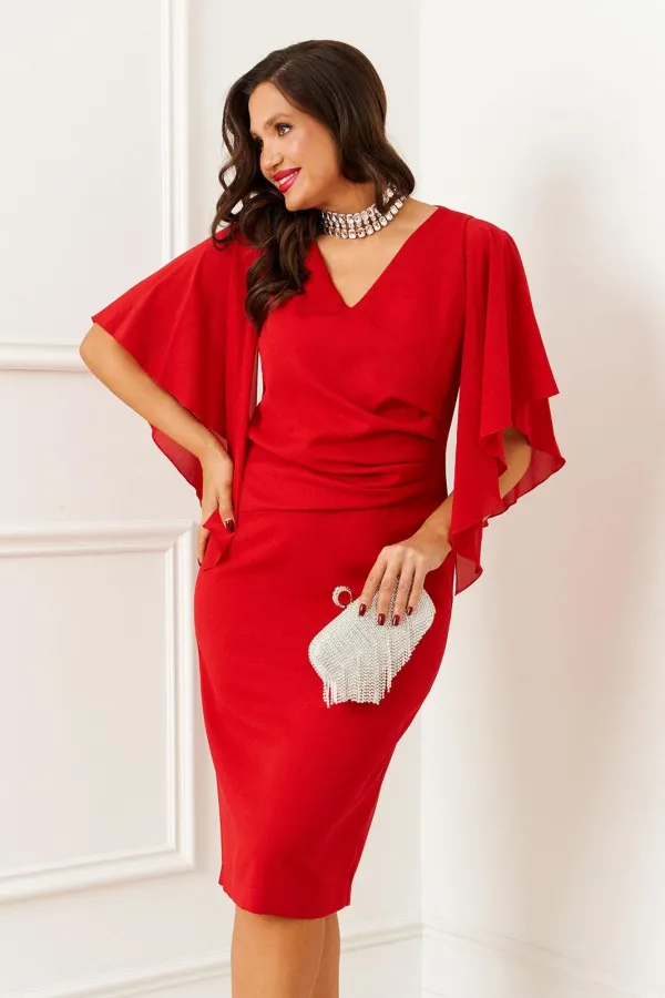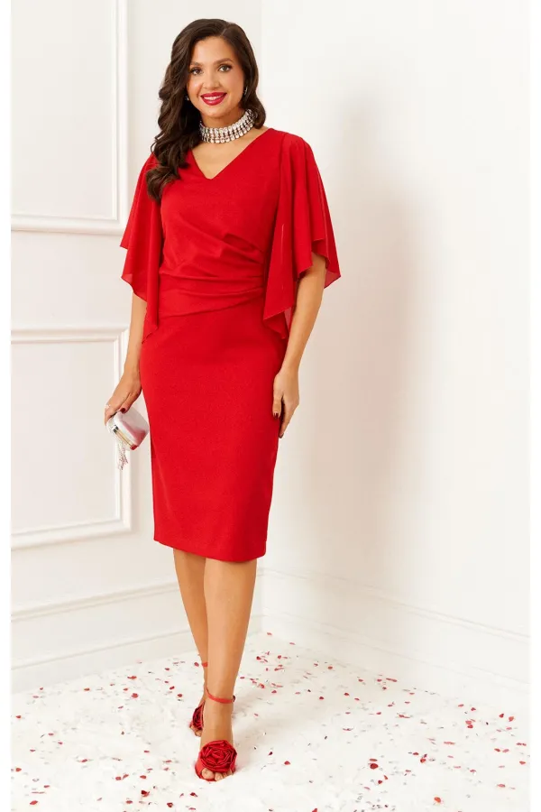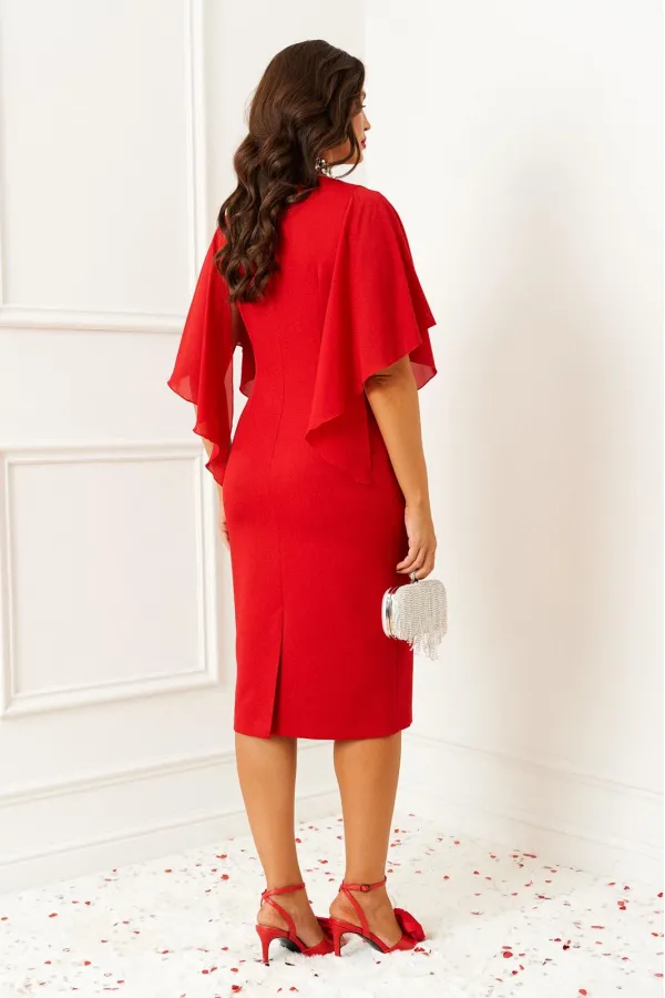 Платье женское, прилегающего силуэта в романтическом стиле, средней длины, выполнено из костюмно-смесового полотна в комбинации с лёгким, струящимся шифоном. Лиф переда на подкладке.