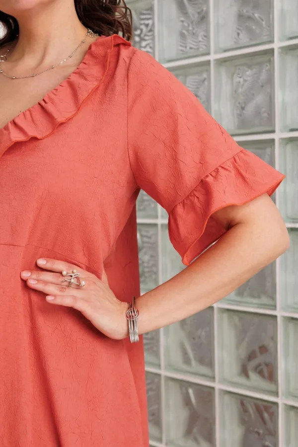 Предлагаем вашему вниманию удлинённое лёгкое платье в трендовом коралловом оттенке для создания элегантного, романтичного образа. Горловина и низ рукава с отделкой из волана добавляют нежность и женственность образу. Пр... Читать далее...