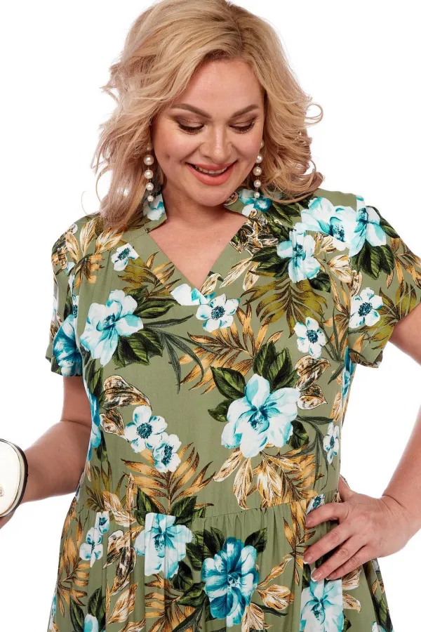 Платье выполнено из мягкой штапельной ткани устойчивой окраски. Рекомендуется вертикальная сушка.