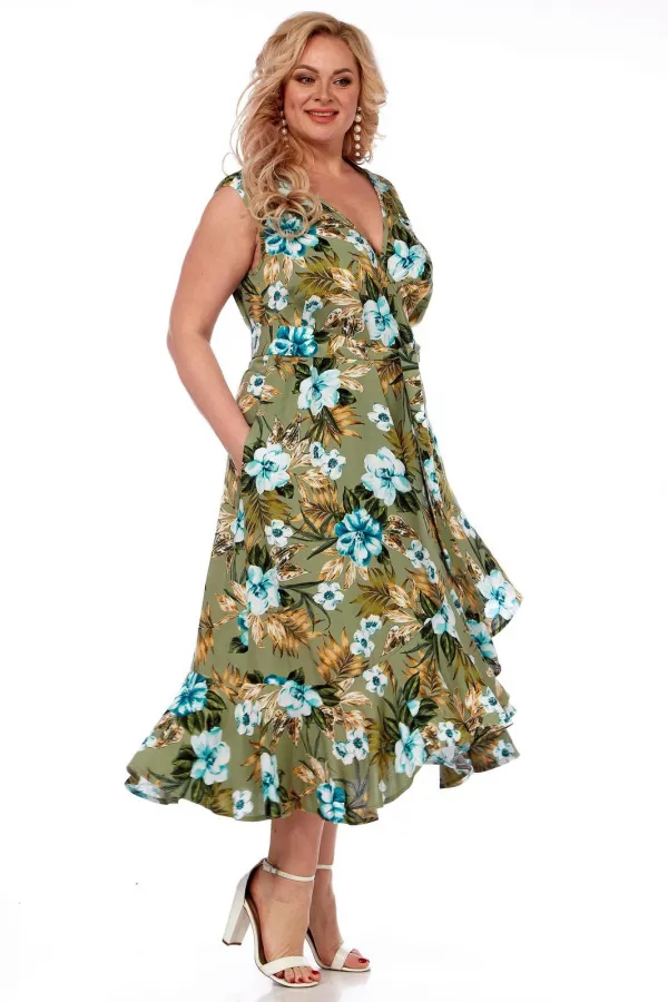Платье выполнено из мягкой штапельной ткани устойчивой окраски. Рекомендуется вертикальная сушка.
