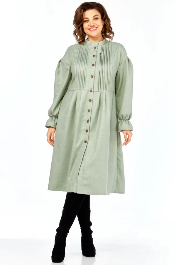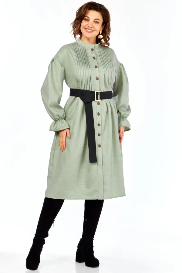 Натуральный состав ткани позволяет коже дышать, обеспечивая максимальный комфорт на протяжении всего дня. Платье свободного кроя, с округлой горловиной обработанной воротником стойкой. Застежка центральная на петли и пуговицы позволяет регулировать глубину выреза. Рукав платья со спущенным плечом и манжетой на резинке создают непринужденный и элегантный силуэт. Центральная часть полочки обработана односторонними складками, линия талии подчеркнута легкой сборкой (защипы). В комплекте идет пояс, который подчеркивает женственные формы, и при этом не сковывает движений. В платье есть внутренние карманы в боковых швах, что придает удобства платью.Ткань не тянется. Длина платья 106 см, длина рукава 69см с учетом приспущенного плеча.
