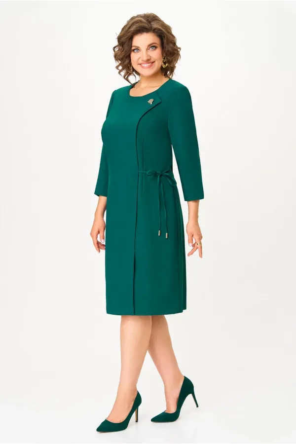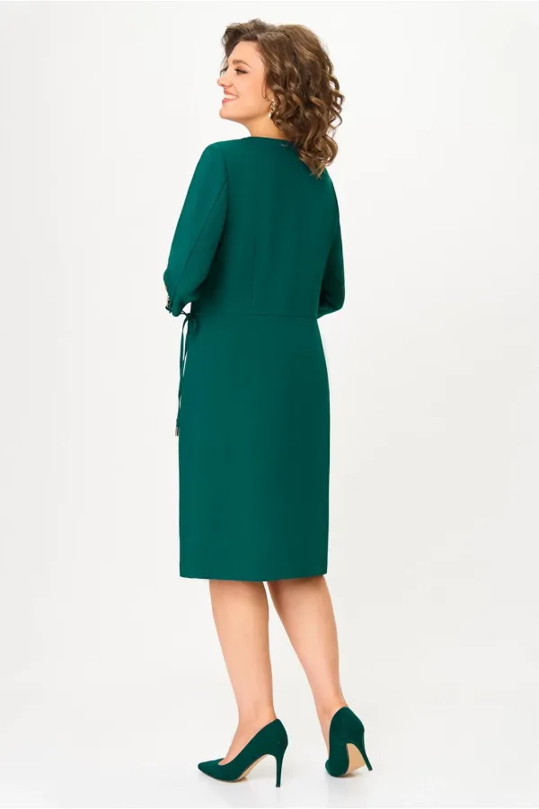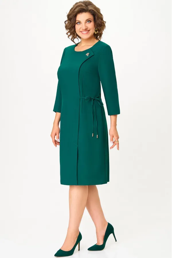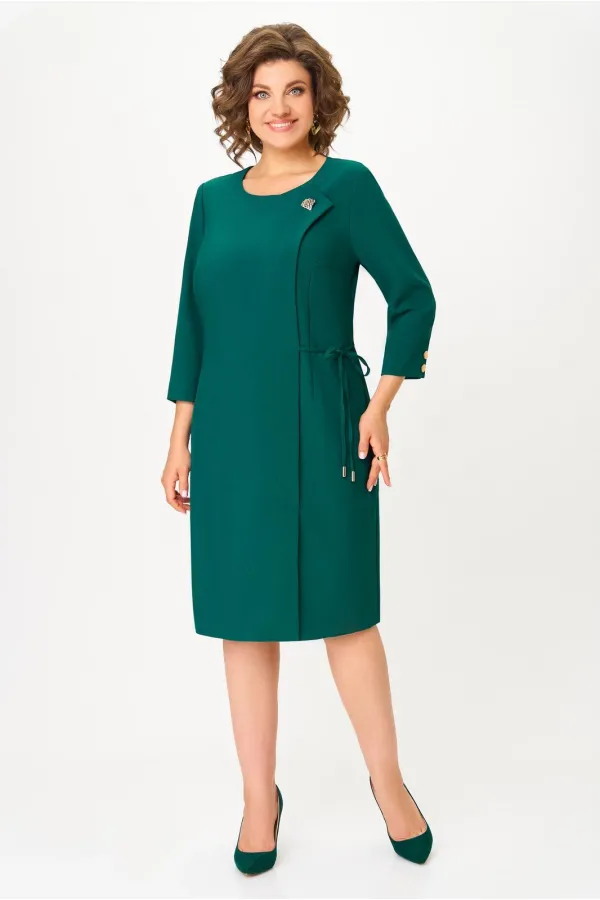 Платье женское, свободного силуэта, из плательной ткани. Отрезное по линии талии. Перед с ассиметричной линией горловины в виде «лодочки» и имитацией запаха. Фигурную линию запаха вверху украшает декоративная пугови... Читать далее...
