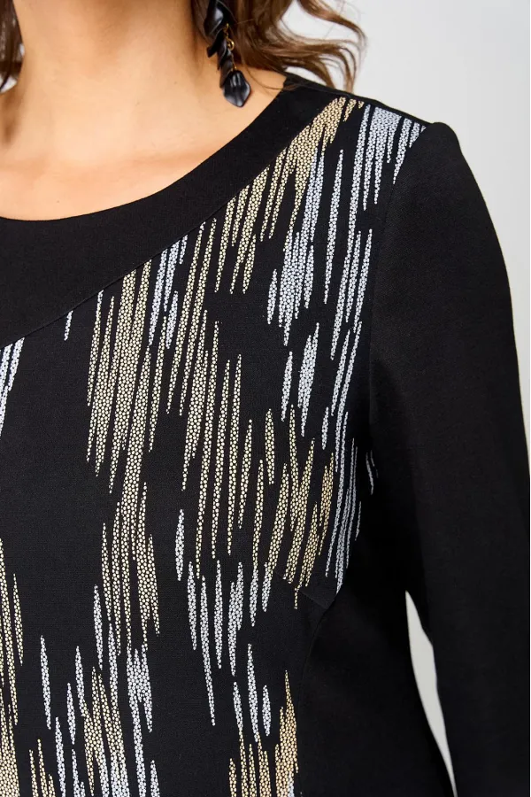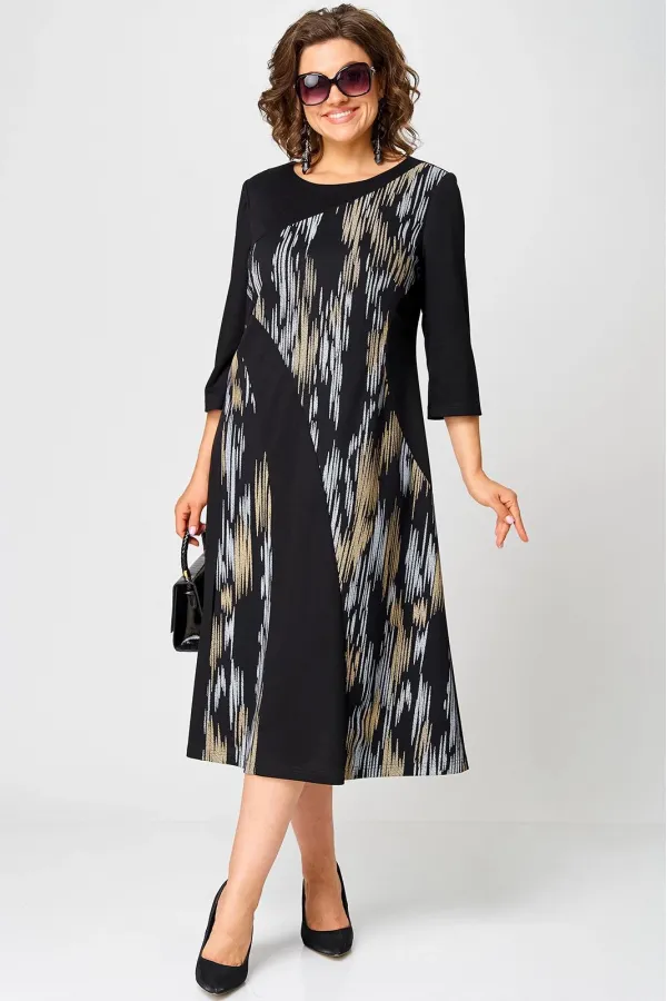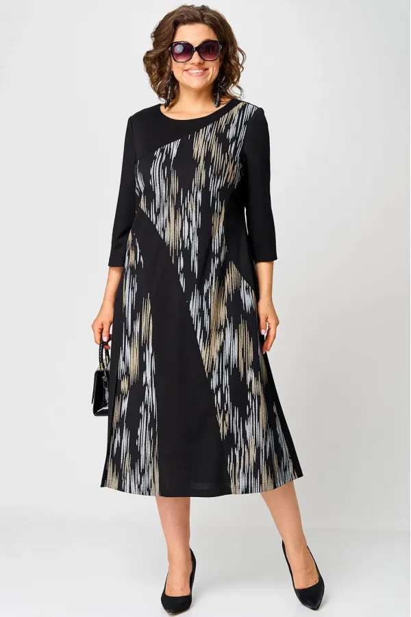 Платье женское повседневное полуприлегающего силуэта расширенное к низу, выполнено из трикотажного полотна двух дизайнов. Вырез горловины круглый на обтачке. Рукав втачной 3/4. Спинка платья выполнена из однотона, полочк... Читать далее...