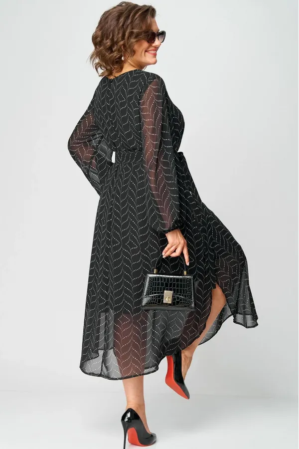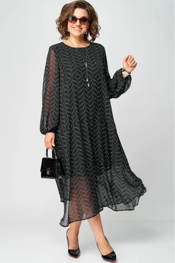 Платье женское нарядно-повседневное А-образного силуэта, выполнено из креп-шифона. Платье на трикотажной подкладке. Вырез горловины круглый на обтачке, по спинке застежка на навесную петлю и пуговицу. Рукав втачной по ни... Читать далее...