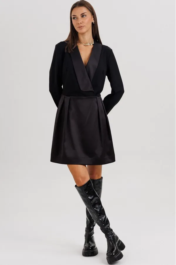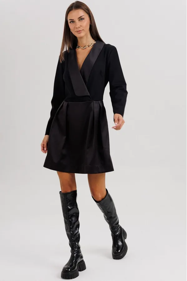 Элегантное платье прилегающего силуэта, созданное для тех, кто ценит стиль, утончённость и безупречное исполнение. Втачной крой гармонично подчеркивает фигуру, а акцентная отделка из атласного полотна придаёт образу изысканный блеск.