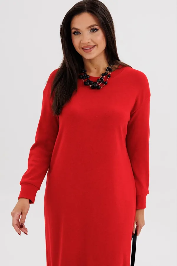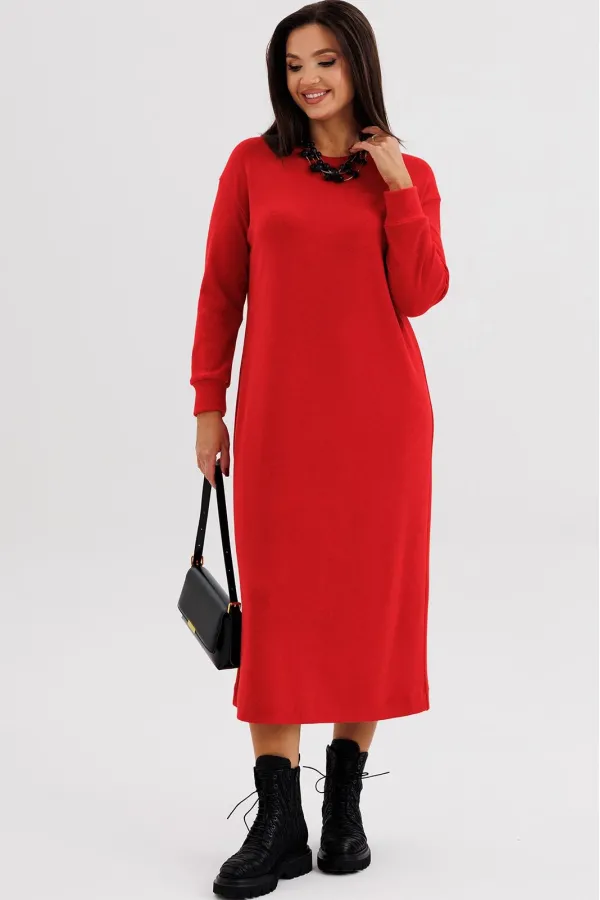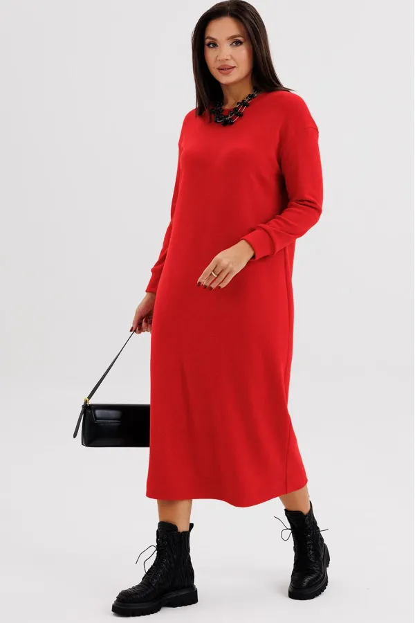 Красное платье миди из трикотажного полотна без разреза — стильный выбор для уверенных в себе женщин, ценящих комфорт и элегантность. Модель выполнена из мягкого эластичного трикотажа, который идеально садится по фигуре ... Читать далее...