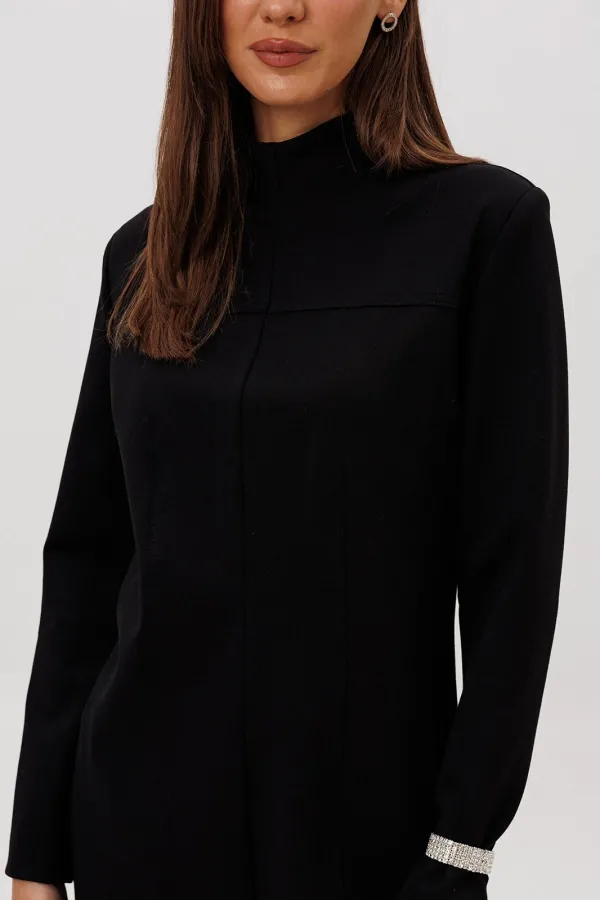 — цельнокроенный воротник-стойка добавляет образу графичности и аристократичной строгости;