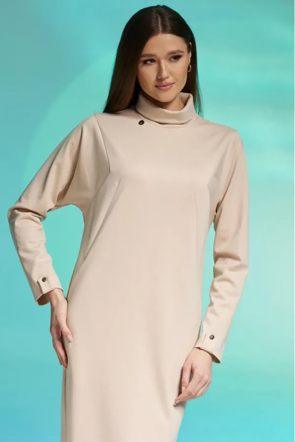Комплектация: платье Силуэт: прямой Тип ткани: трикотаж Вырез горловины:воротник-стойка Длина изделия: по спинке - 118см Длина рукава: 62 см, рукав цельнокроенный, с имитацией квадратной проймы. Дополнительное описание: ... Читать далее...