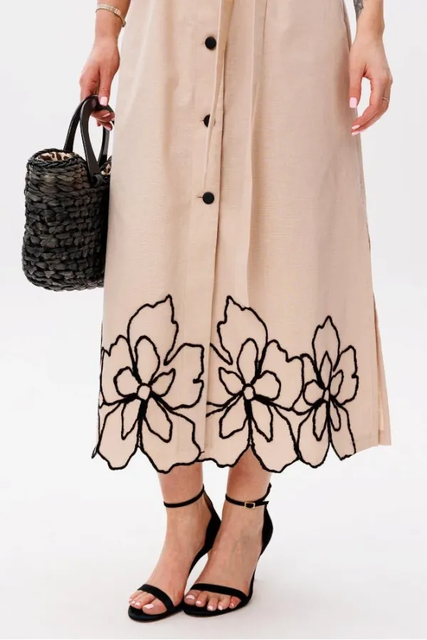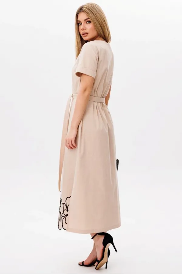 Рукав втачной, с отворотом. Низ платья фигурный, с вышивкой.