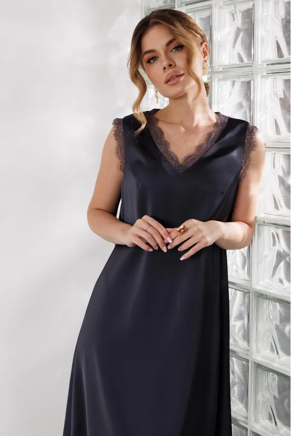 Горловина и проймы отделаны кружевом в цвет основной ткани.