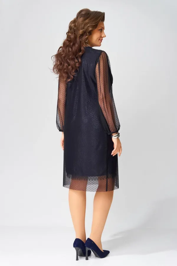 Элегантное платье прямого силуэта из трикотажного полотна с воздушной сеткой — идеальный выбор для праздничного выхода. Платье без подкладки.