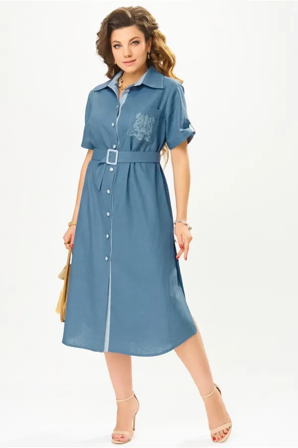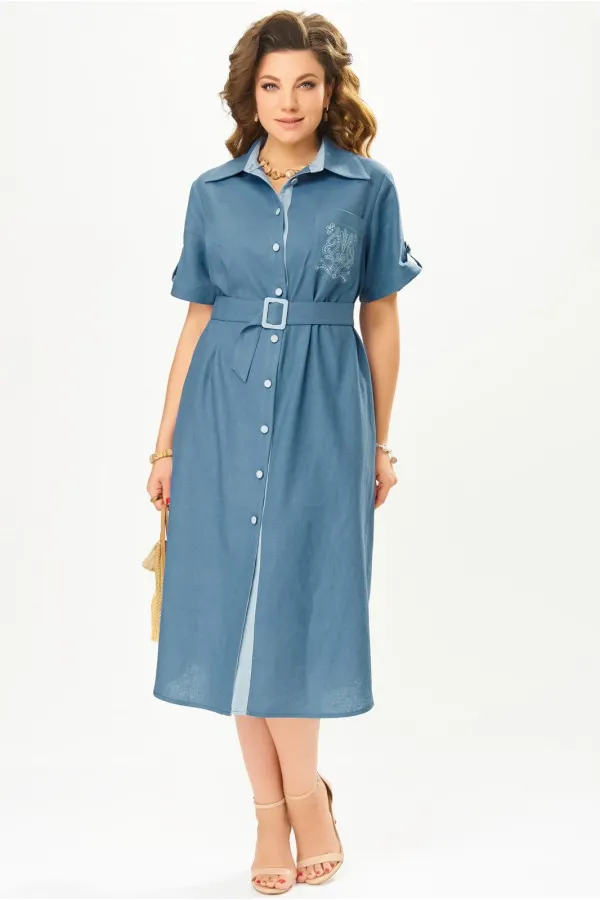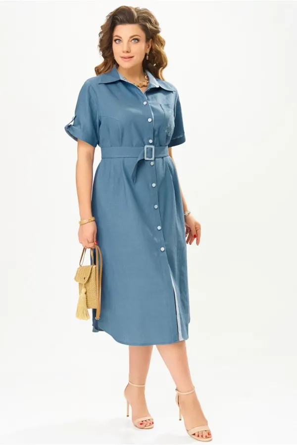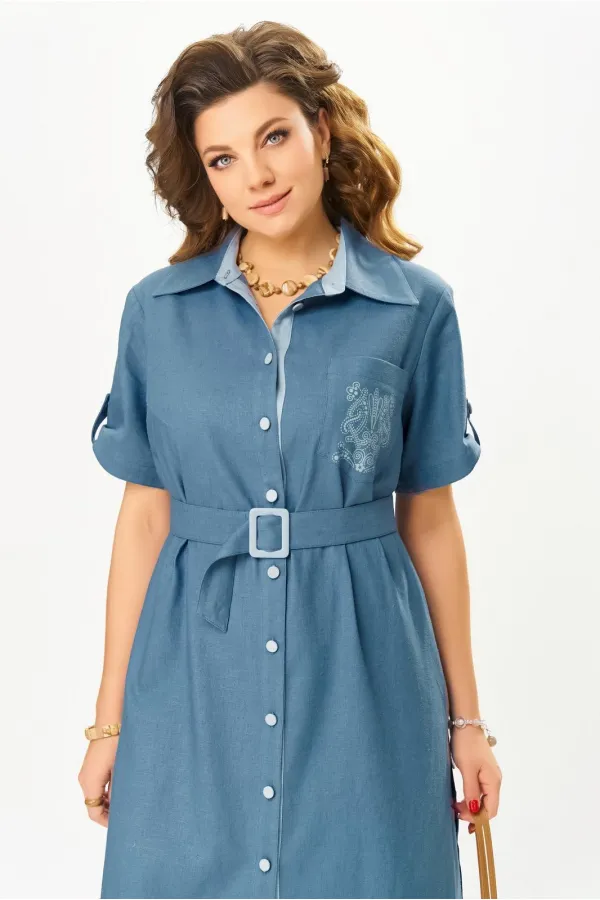 Созданное из льняной ткани с добавлением вискозы, оно дарит ощущение легкости и свежести, а его прямой силуэт подчеркивает естественную красоту фигуры. Съемный пояс позволяет варьировать образ, добавляя акцент на талии или создавая расслабленный силуэт.