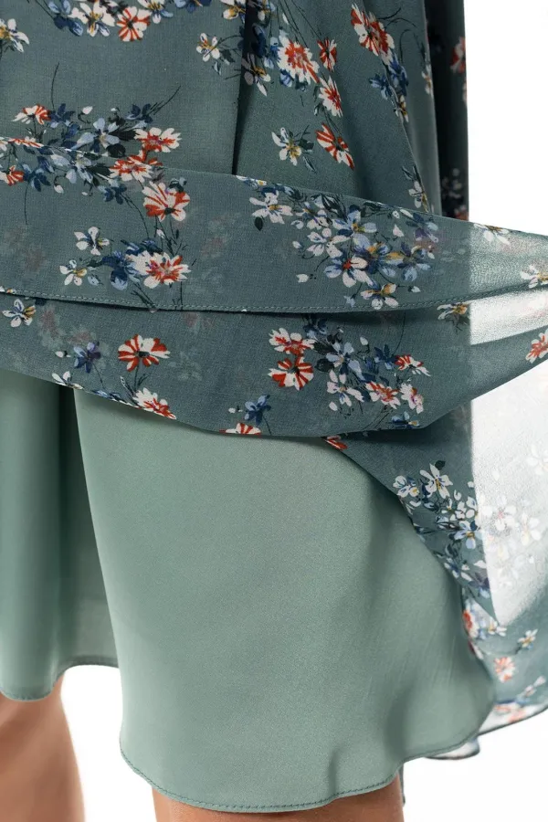 Цветовая гамма для верха, подкладки, фурнитуры, отделки: платье из ткани с рисунком.