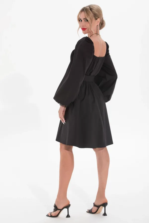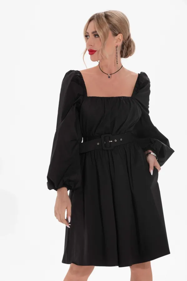 Описание внешнего вида: Платье без воротника, с фигурным вырезом горловины, застежкой на потайную молнию в среднем шве спинки. Платье отрезное по линии талии, шов по талии присборен на резинку. По окату рукава притачная планка, присборенная на резинку. Рукав втачной, длинный, с отрезной манжетой.По шву притачивания манжети - сборка. Окат рукава присборен. Горловина переда и спинки присборена. Платье со съемным поясом. В боковых швах- карманы. Цветовая гамма для верха, подкладки, фурнитуры, отделки: платье из ткани в одной цветовой гамме. Комплектация: платье без подкладки