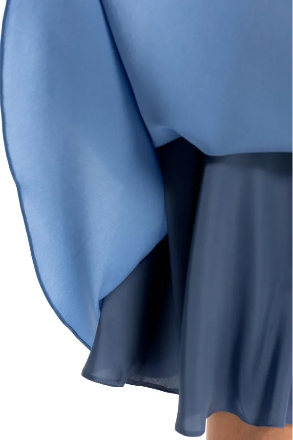 Платье без воротника, с фигурным вырезом вырезом горловины, застежкой на потайную молнию в среднем шве спинки. Платье отрезное по линии талии. Лиф с рельефами, выходящими из горловины. Рельефные швы лифа усилены регилино... Читать далее...