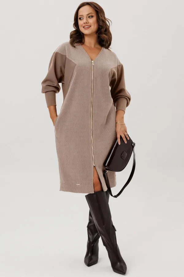 Платье полуприлегающего силуэта, вырез горловины V – образный, рукав цельнокроеный спущенный со вставками из кожи и на манжете внизу. По спинке кокетка, в боковых швах функциональные карманы. Застежка на тесьму-молнию. В... Читать далее...