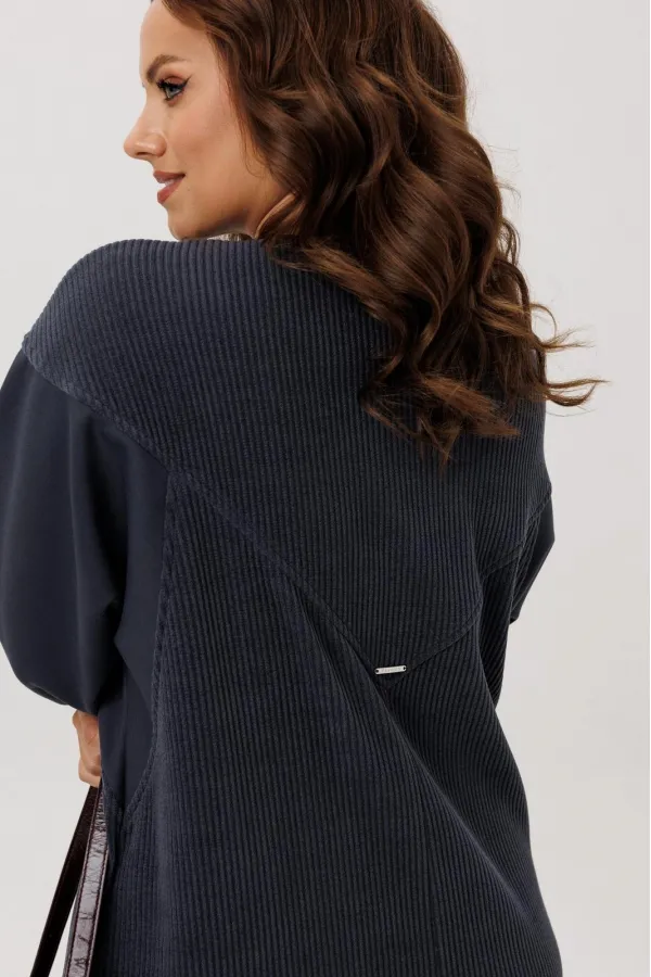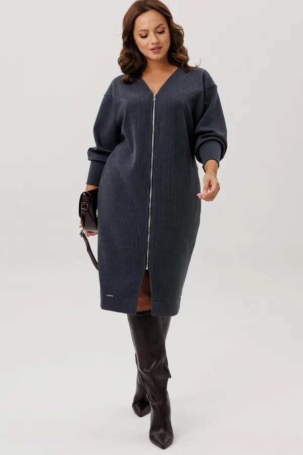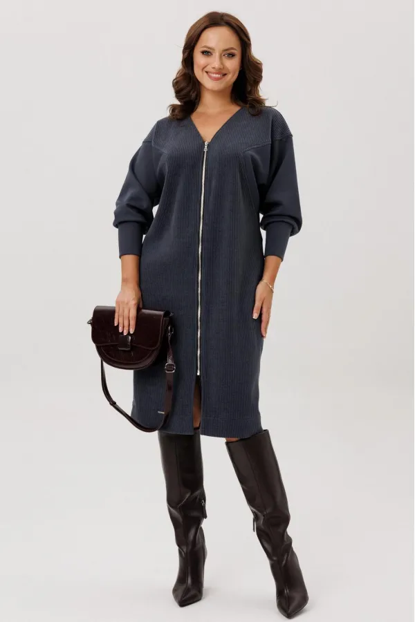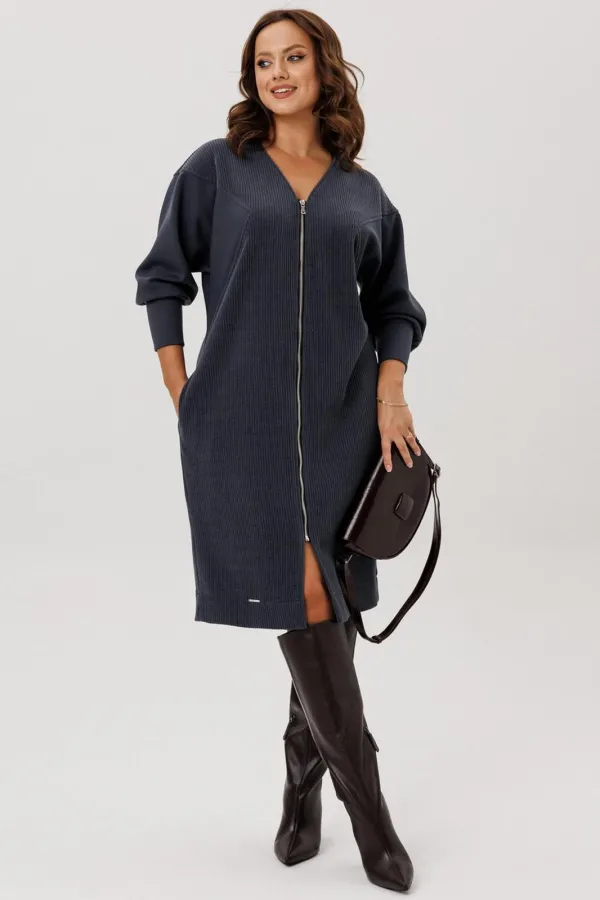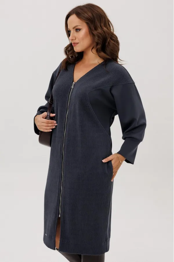 Платье полуприлегающего силуэта, вырез горловины V – образный, рукав цельнокроеный спущенный со вставками из кожи и на манжете внизу. По спинке кокетка, в боковых швах функциональные карманы. Застежка на тесьму-молнию. В... Читать далее...