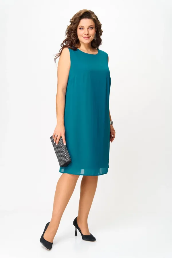 Комплект: туника, платье. Выполнен из креп- шифона. Туника свободной формы, без боковых швов, с декоративной застёжкой сверху. Платье на трикотажной подкладке. Силуэт прямой. Без рукавов. Горловина овальная. Нагрудные ... Читать далее...