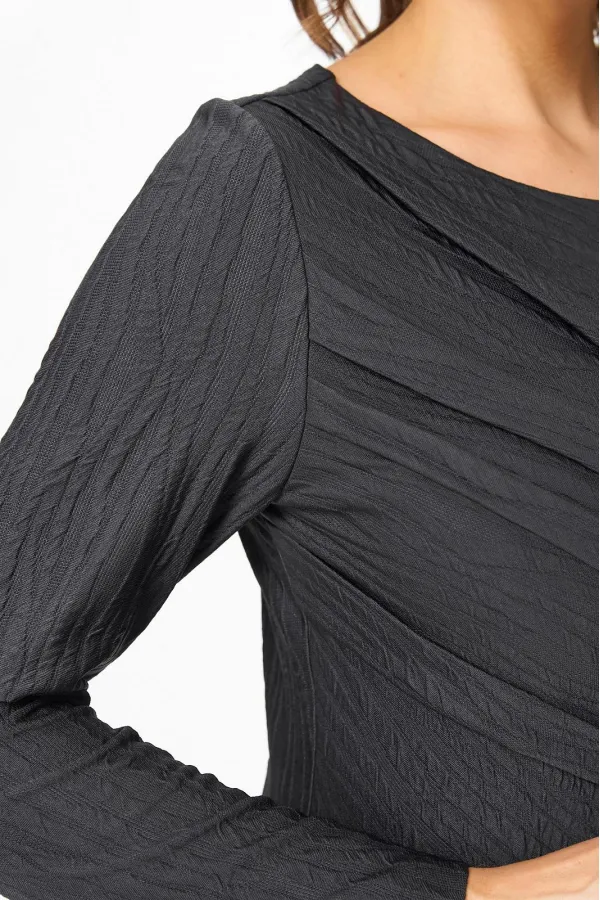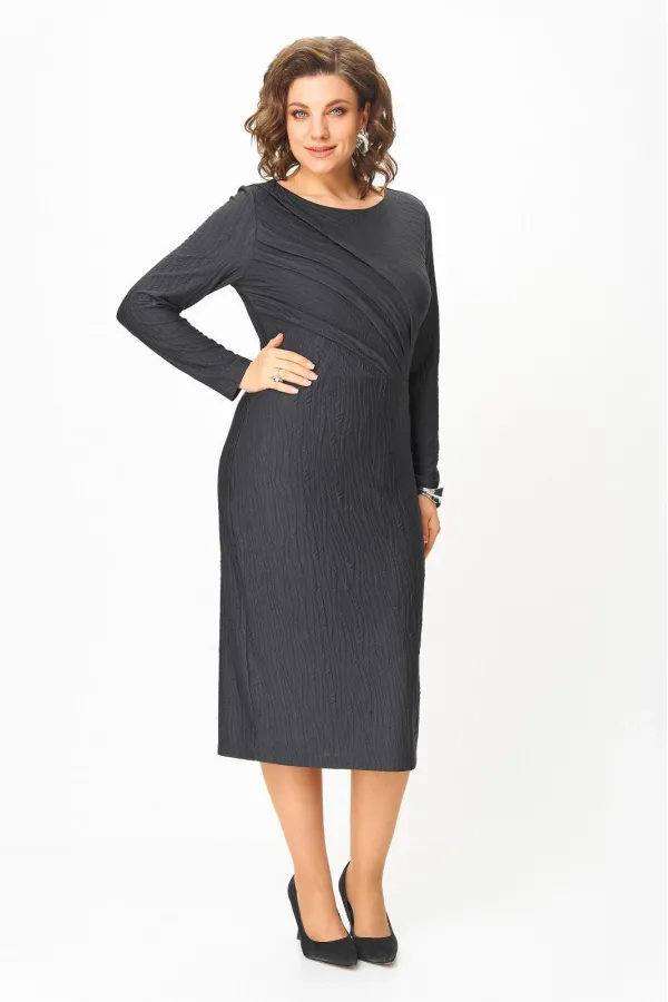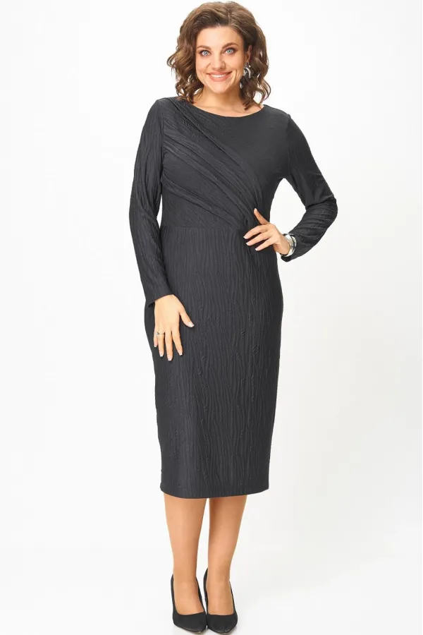 Нарядное женское платье из трикотажного полотна с добавлением вискозы, с оригинальной выпуклой фактурой с рисунком в тон. Силуэт полуприлегающий, по переду отрезное по линии талии, по лифу наклонные бантовые складки, выр... Читать далее...