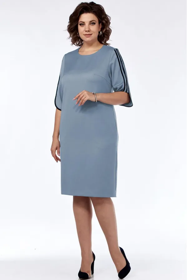 Платье женское от Леди - стиль классик. Платье женское стильное, прямого силуэта, из текстильного материала. С круглым вырезом горловины и карманами в боковых швах. Перед с нагрудными вытачками. Спинка с потайной молнией в среднем шве и разрезом в среднем шве. Рукава втачные, одношовные, фигурные по низу, с отделочной деталью по центру и настрочной тесьмой, длиной до локтя. Платье комплектуется съемным поясом. Размеры 48-52: длина платья 101 см, длина рукава 17 см.