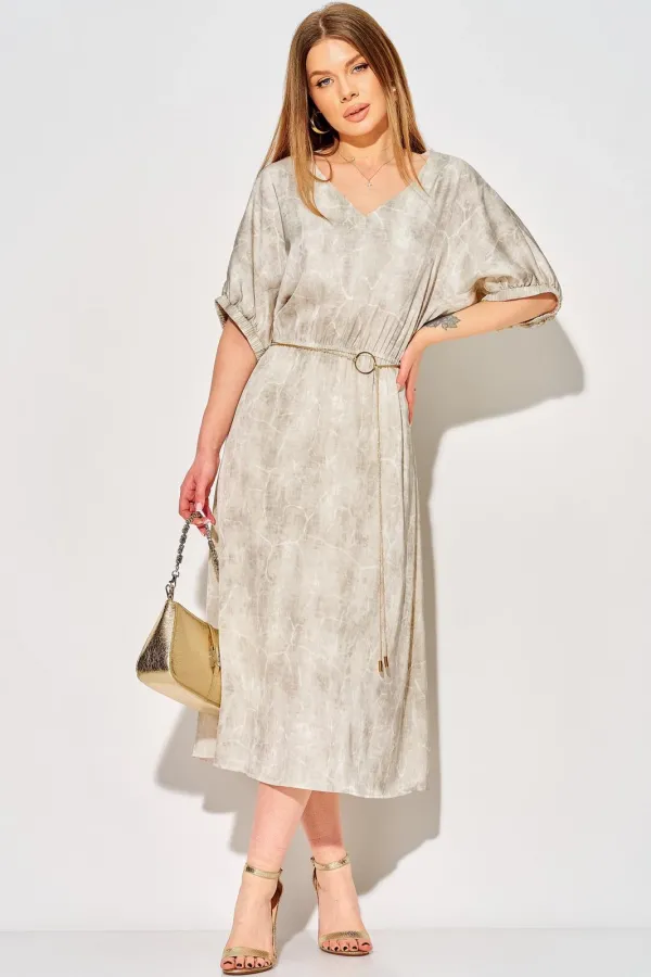 Особое внимание привлекает декорированный съемный пояс, который позволяет вам варьировать стиль и подчеркивать талию. Пояс идет в комплекте, декор может отличаться от представленного на фотографии.