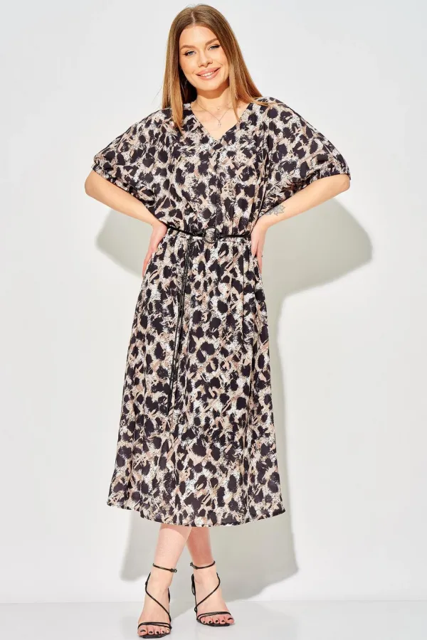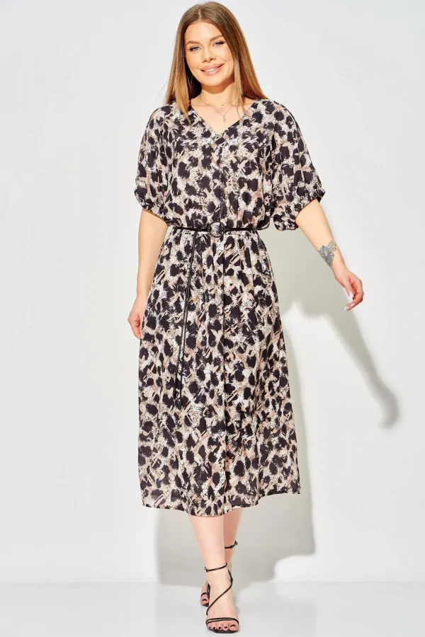Особое внимание привлекает декорированный съемный пояс, который позволяет вам варьировать стиль и подчеркивать талию. Пояс идет в комплекте, декор может отличаться от представленного на фотографии.