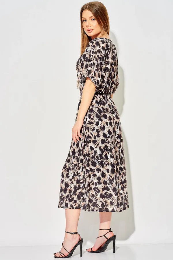 Элегантное повседневное платье от Laikony полуприлегающего силуэта. Длина платья до середины икр, отрезное на уровне линии талии, к низу расширенное. Вырез горловины платья «V-образной» формы, обработан обтачкой. Лиф дет... Читать далее...
