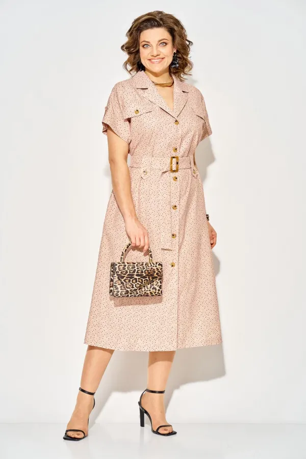 Эффектное платье в стиле сафари, идеальный выбор для жарких будней и не только! Модель трапециевидного силуэта, с аккуратным отложным английским воротником. Застежка центральная, на петли и пуговицы с подбортом. Линия пл... Читать далее...