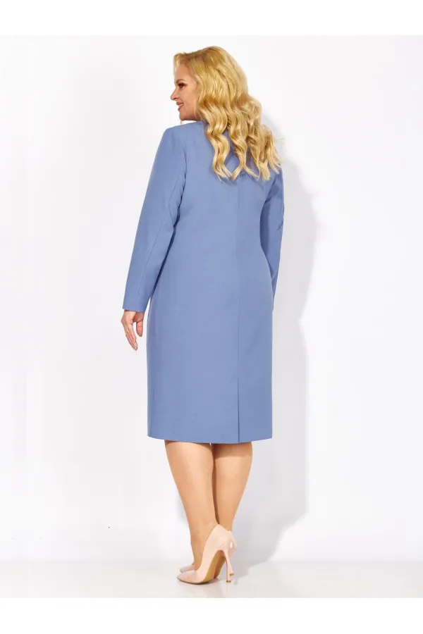 Повседневное текстильное платье средней длины на рост 164 см. Силуэт полуприлегающий. Вырез горловины фигурный. Рукав втачной длинный. Перед платья с мягкой нагрудной вытачкой в виде складки с декоративным пояском, дополненным металлической нашивкой. По спинке средний шов с застежкой молнией и со шлицей.