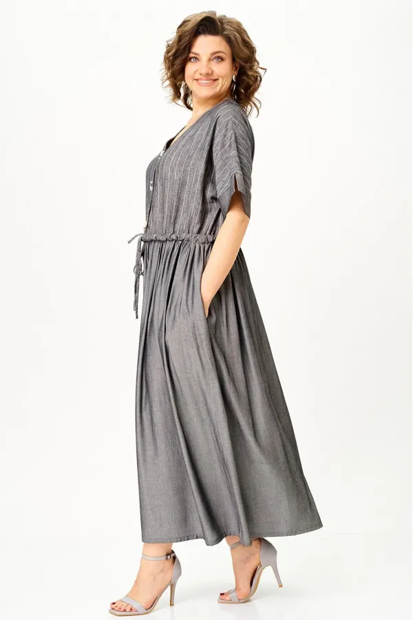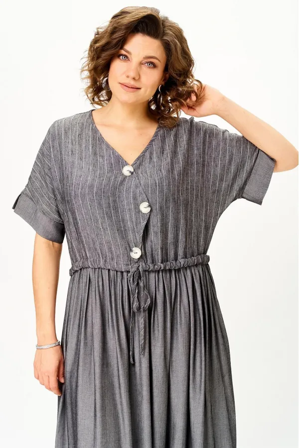 Стальной лен в полоску плюс темный графит» — must-have сезона, в котором сочетаются лёгкость, стиль и свобода движения. Модель легко трансформируется: носите свободно для бохо-образа или подчеркните талию поясом для более женственного силуэта.